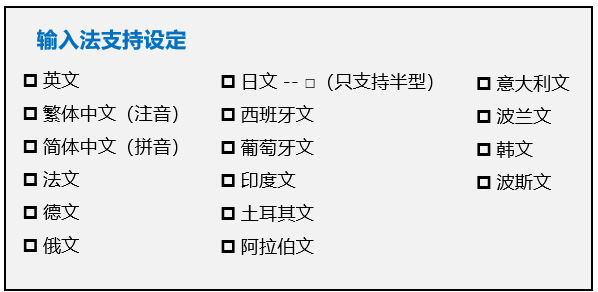 軟件功能 | 多語(yǔ)輸入 | ||||