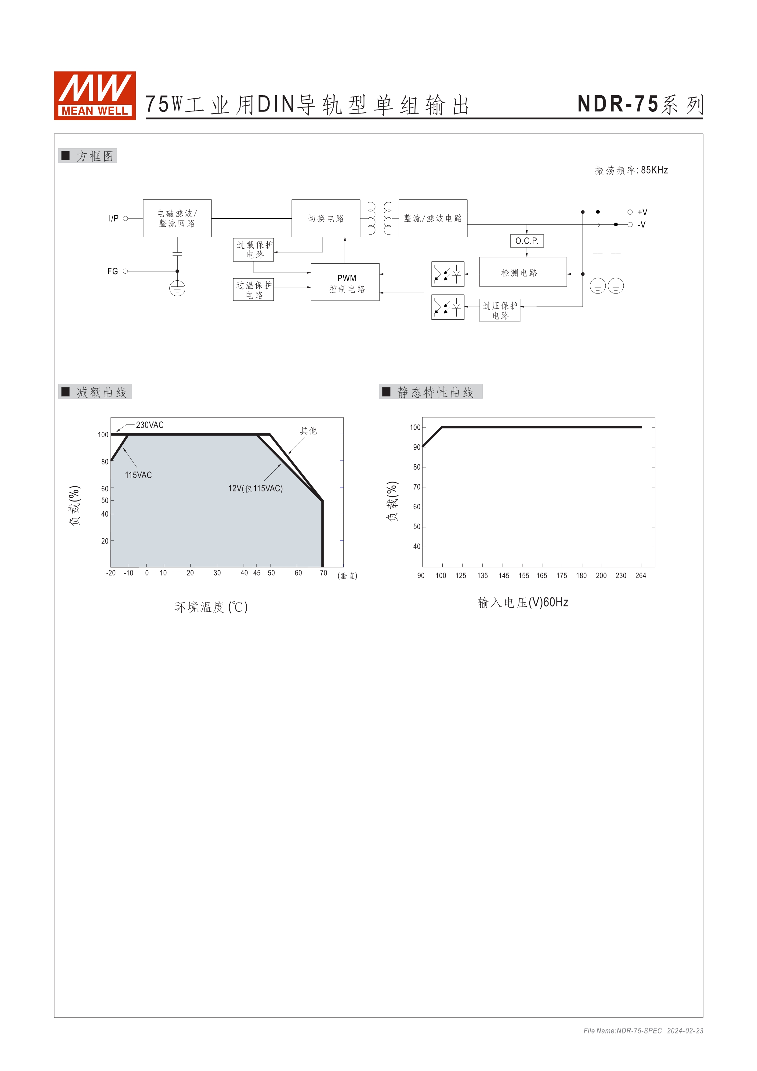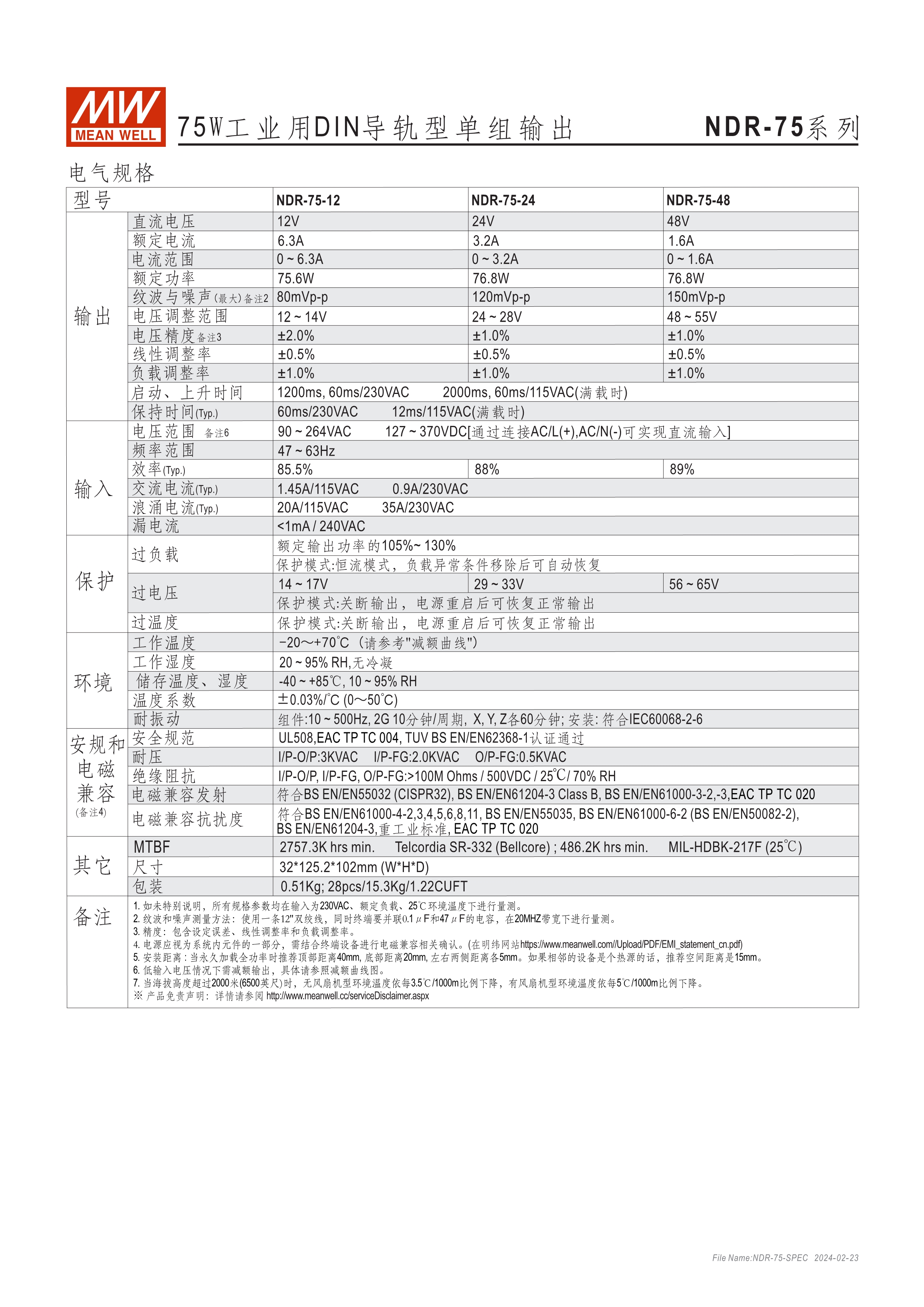 金屬殼,經(jīng)濟(jì)款 單相, 90~264Vac, 全范圍輸入 窄面寬設(shè)計(jì):32~85.5mm EMC EN55022 class B 適合安裝于DIN rail TS-35 / 7.5或15 3年保固期