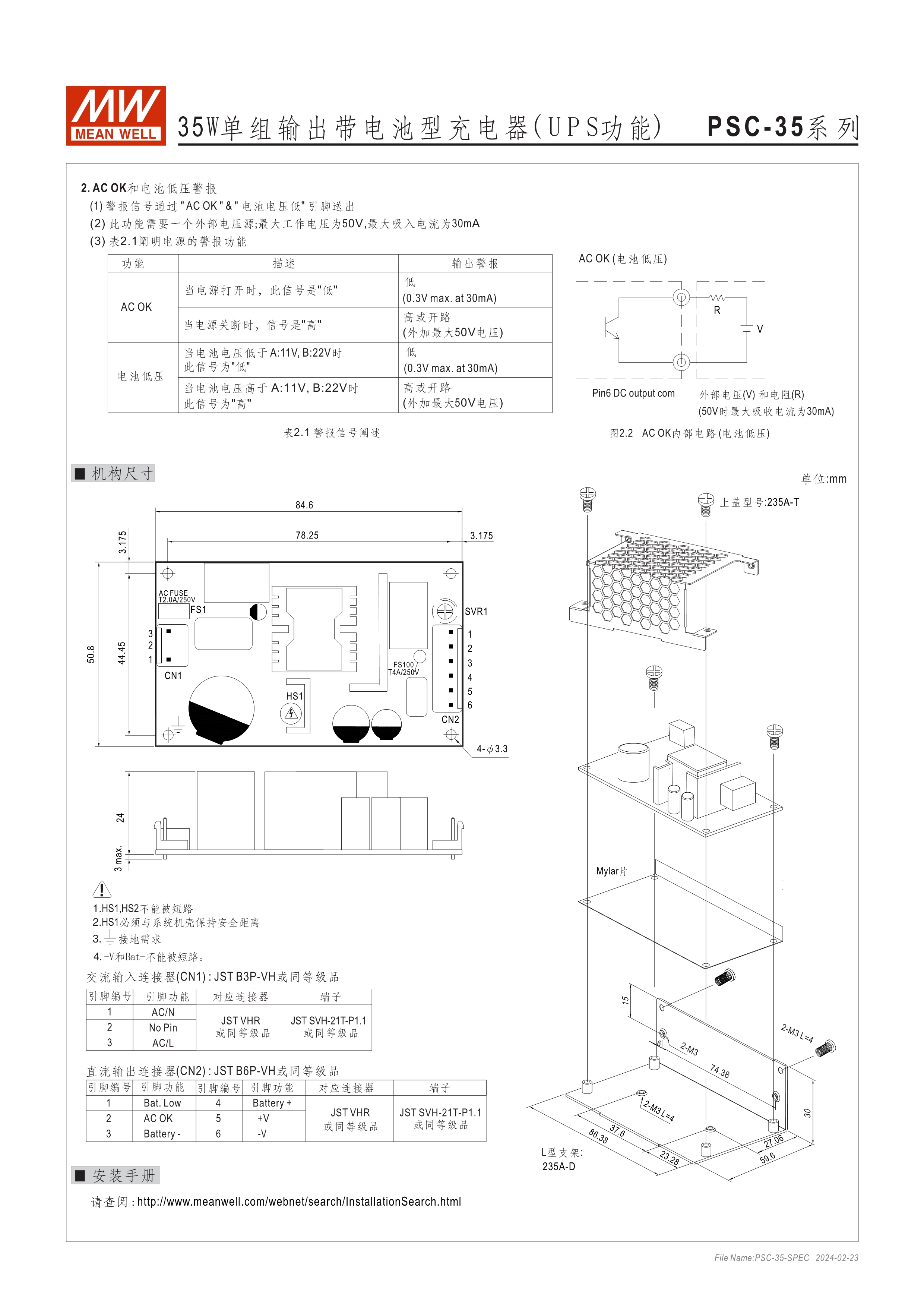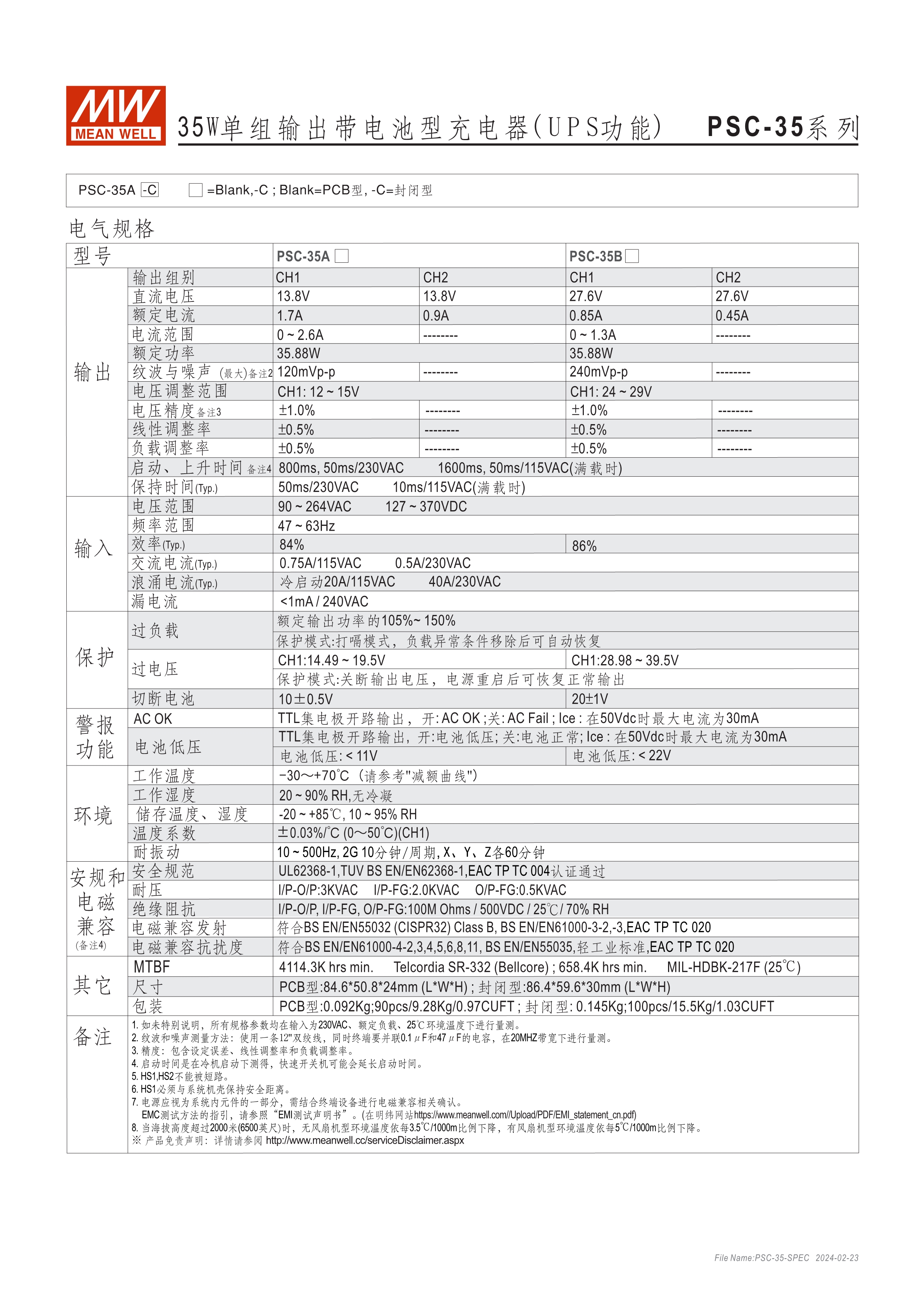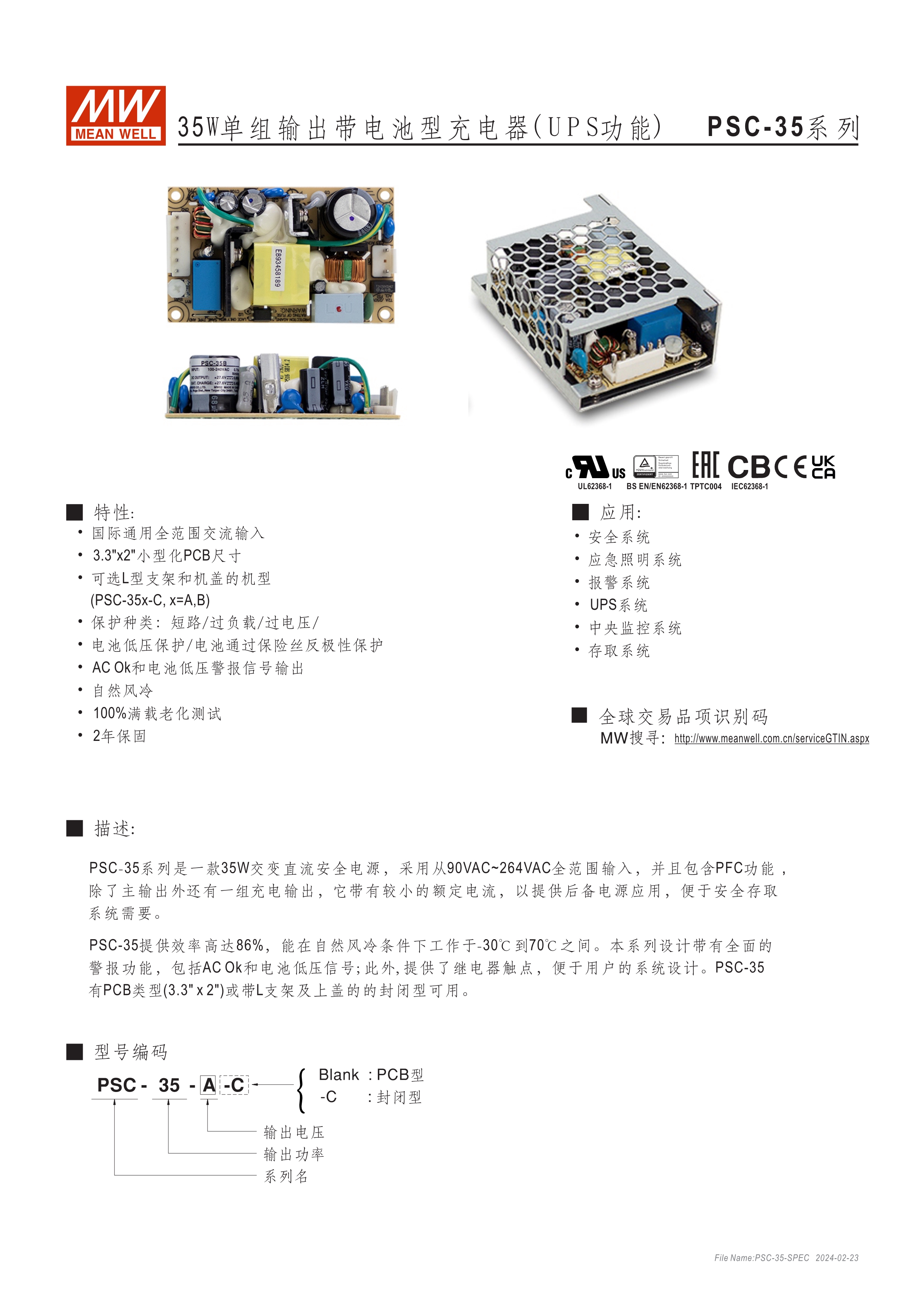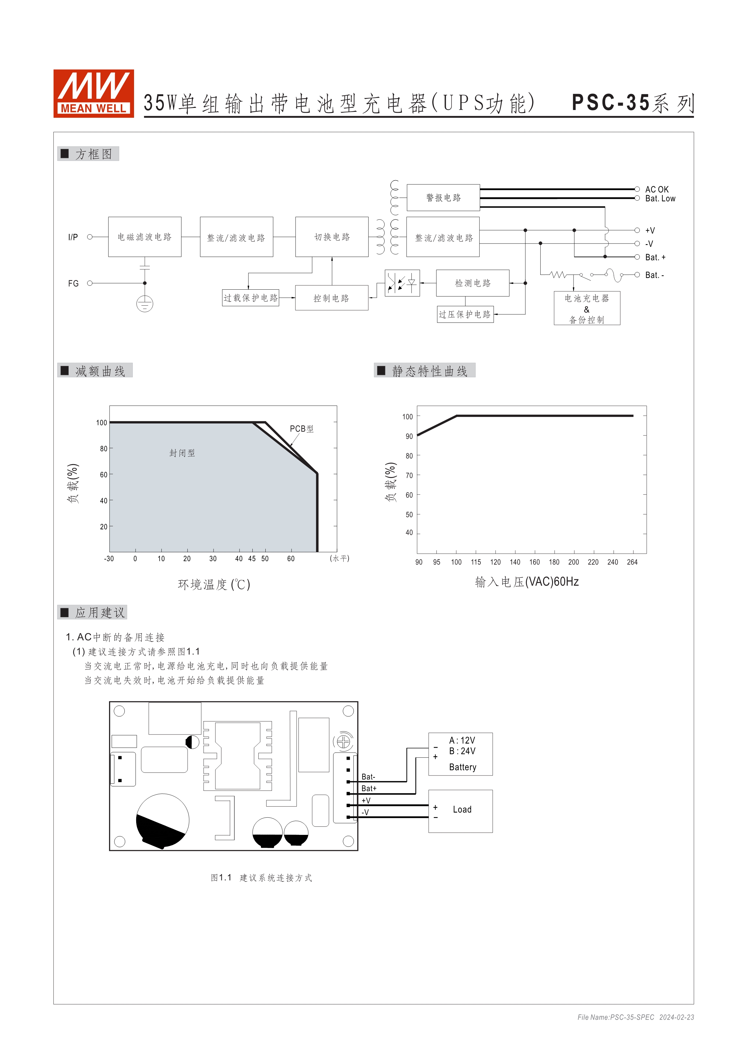 具UPS 功能(需外接電池) 適合用于安全監(jiān)控設(shè)備或各式電池備援系統(tǒng) PSC-160內(nèi)建主動式功率因子矯正功能(active PFC) 亦可提供機(jī)殼型