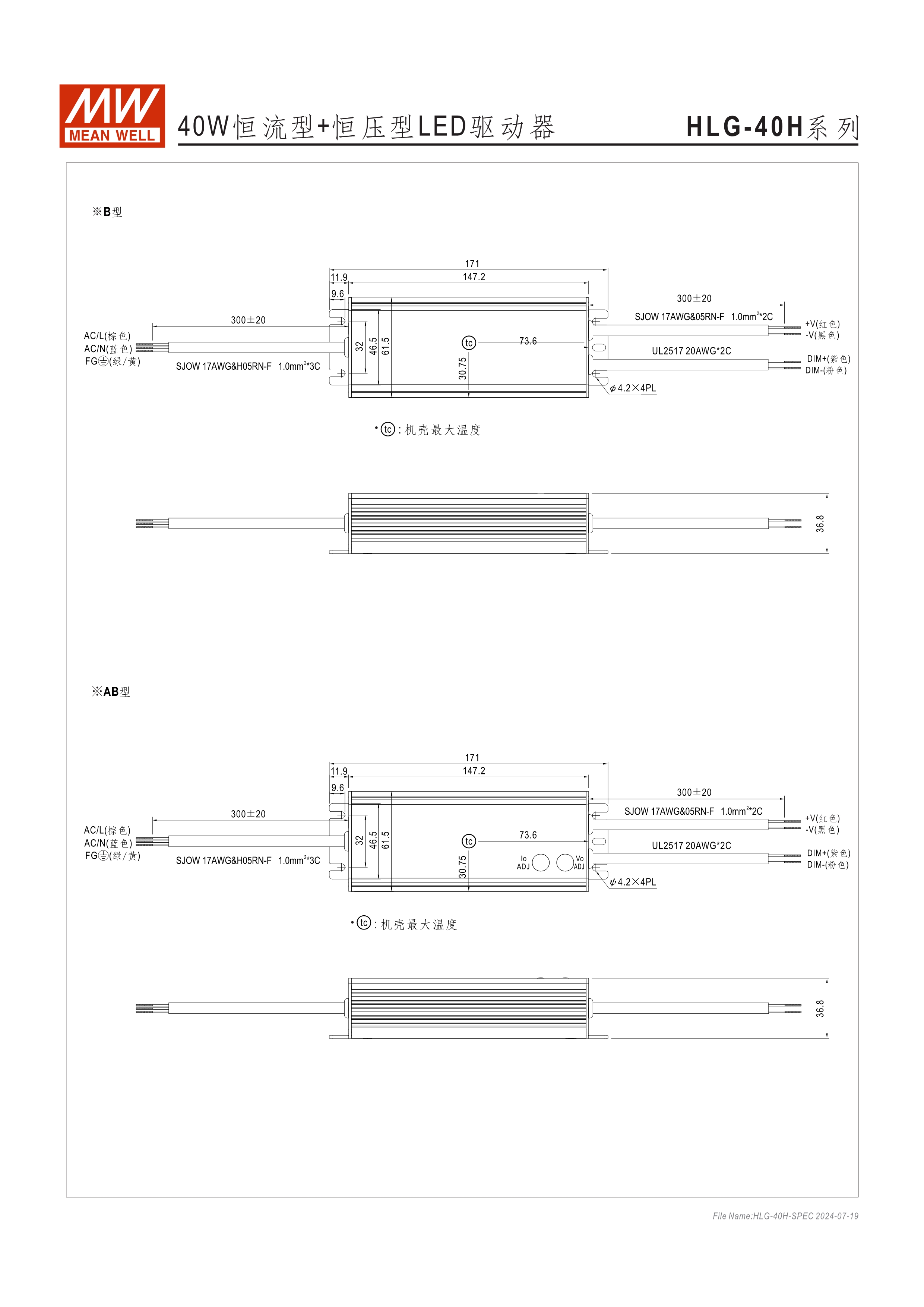90~305VAC交流輸入,內(nèi)建主動(dòng)式功率因子矯正功能(active PFC) 96%超高效率(HLG-600H) 金屬外殼,IP67/IP65防護(hù)等級(jí)可用于戶外與室內(nèi) 功能選項(xiàng) : 輸出可經(jīng)由電位器調(diào)整;三合一調(diào)光(1~10Vdc或10V PWM信號(hào)或電阻);定時(shí)調(diào)光 Type "HL" LED電源適用在安裝于Class I, Division 2 類 危險(xiǎn)地點(diǎn)之照明燈具 適合于LED路燈、戶外照明及需求高IP防護(hù)等級(jí)之戶外應(yīng)用 另有IP68/-55℃開機(jī)/10G震動(dòng)承受能力等選項(xiàng)(細(xì)節(jié)請(qǐng)與明緯聯(lián)系) 7年保固期
