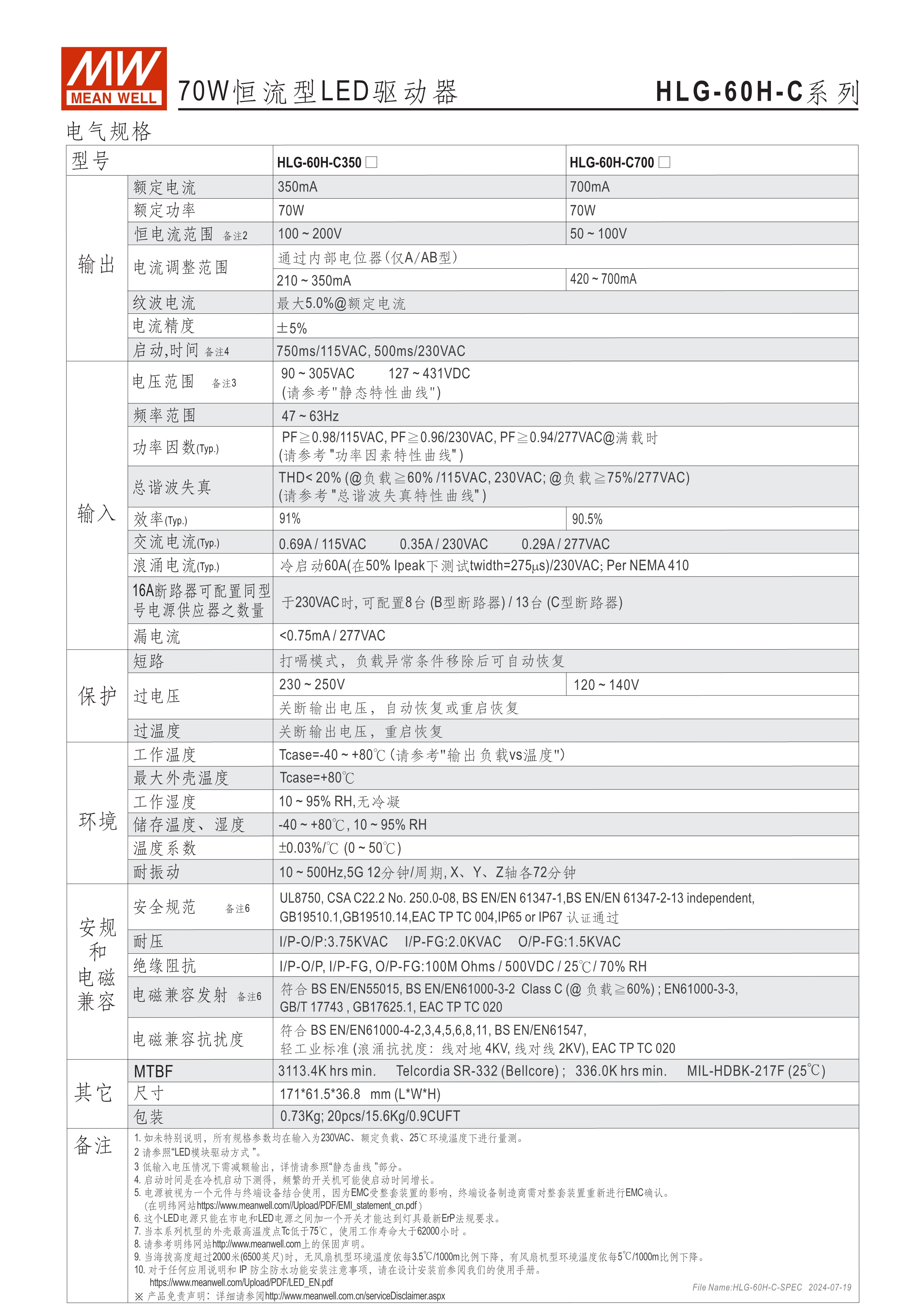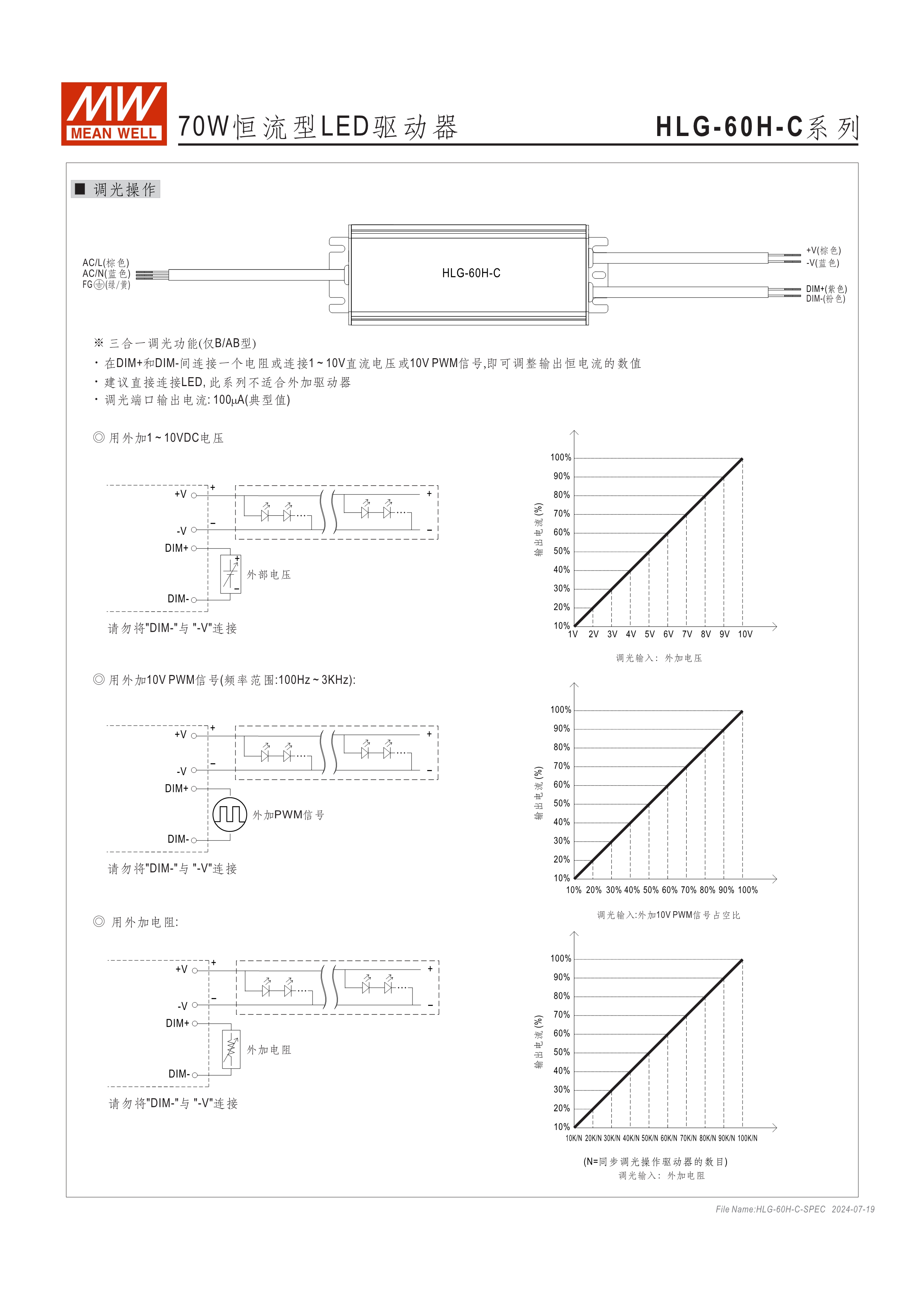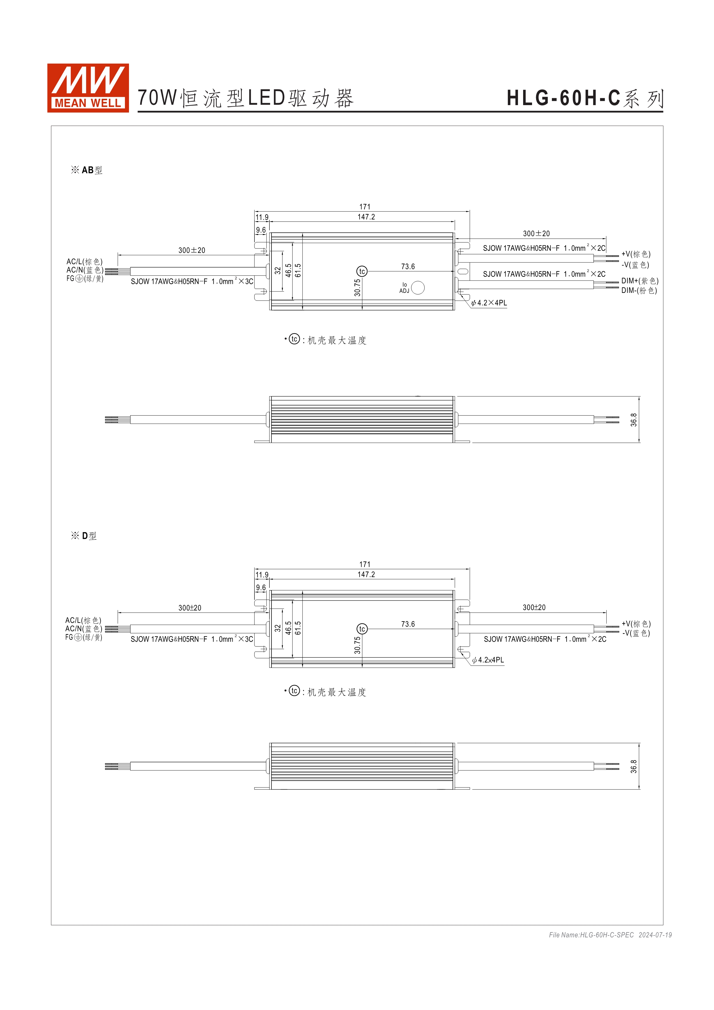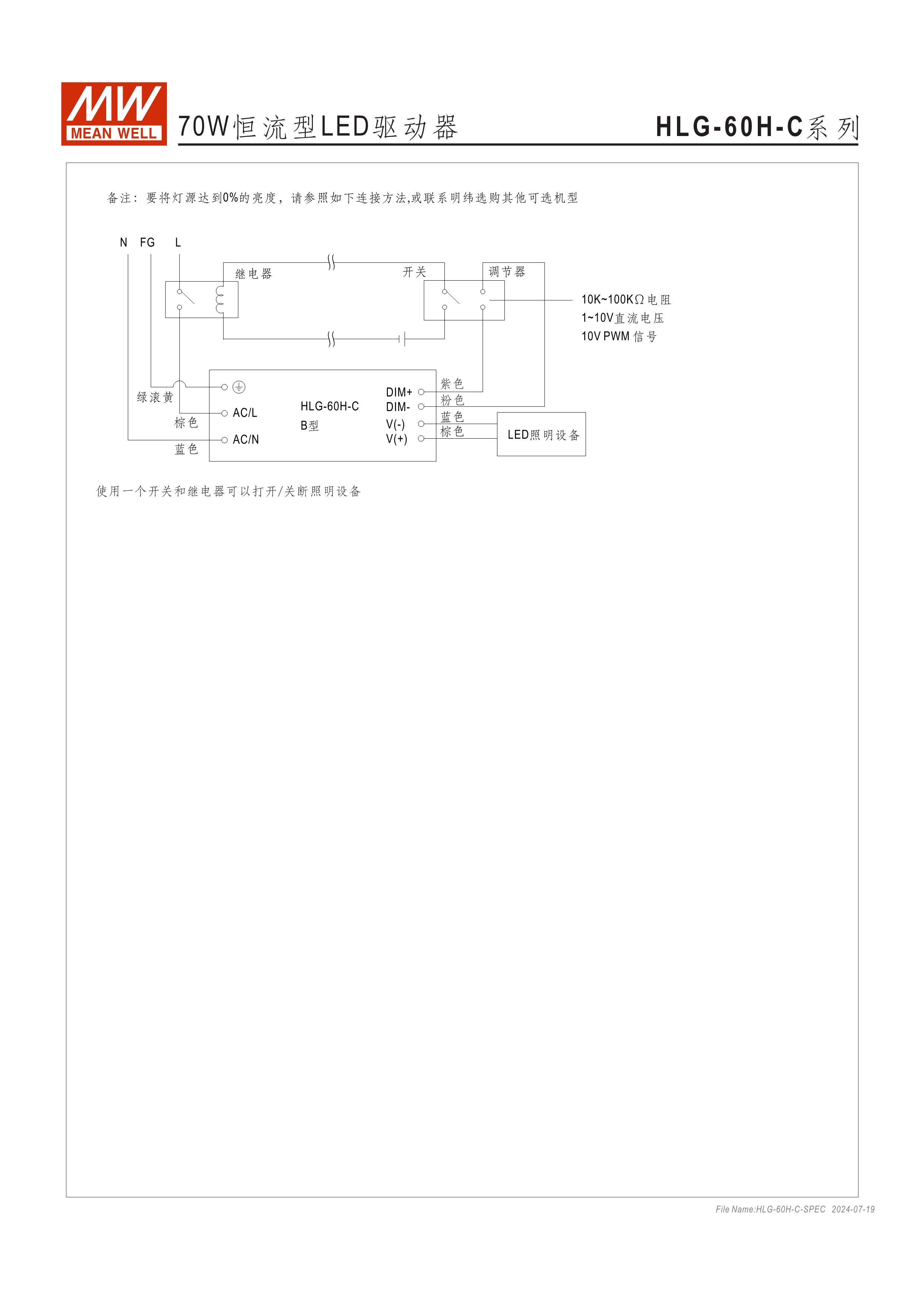 90~305VAC交流輸入,內(nèi)建主動(dòng)式功率因子矯正功能(active PFC) 高壓(大于60VDC)恒流輸出機(jī)種 金屬外殼,IP67/IP65防護(hù)等級(jí)可用于戶外與室內(nèi) 功能選項(xiàng) : 輸出可經(jīng)由電位器調(diào)整;三合一調(diào)光(1~10Vdc或10V PWM信號(hào)或電阻);定時(shí)調(diào)光;智能定時(shí)調(diào)光 Type "HL" LED電源適用在安裝于Class I, Division 2 類 危險(xiǎn)地點(diǎn)之照明燈具 (僅HLG-240H-C/320H-C) 適合于LED路燈及戶外LED照明等應(yīng)用 7年保固期