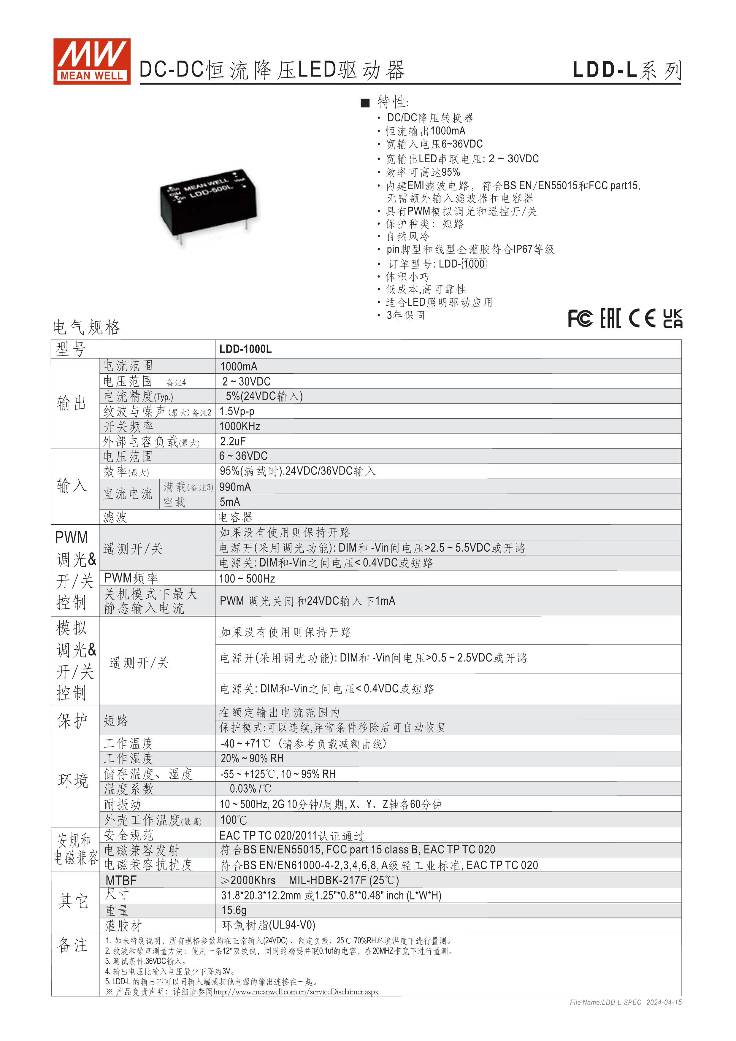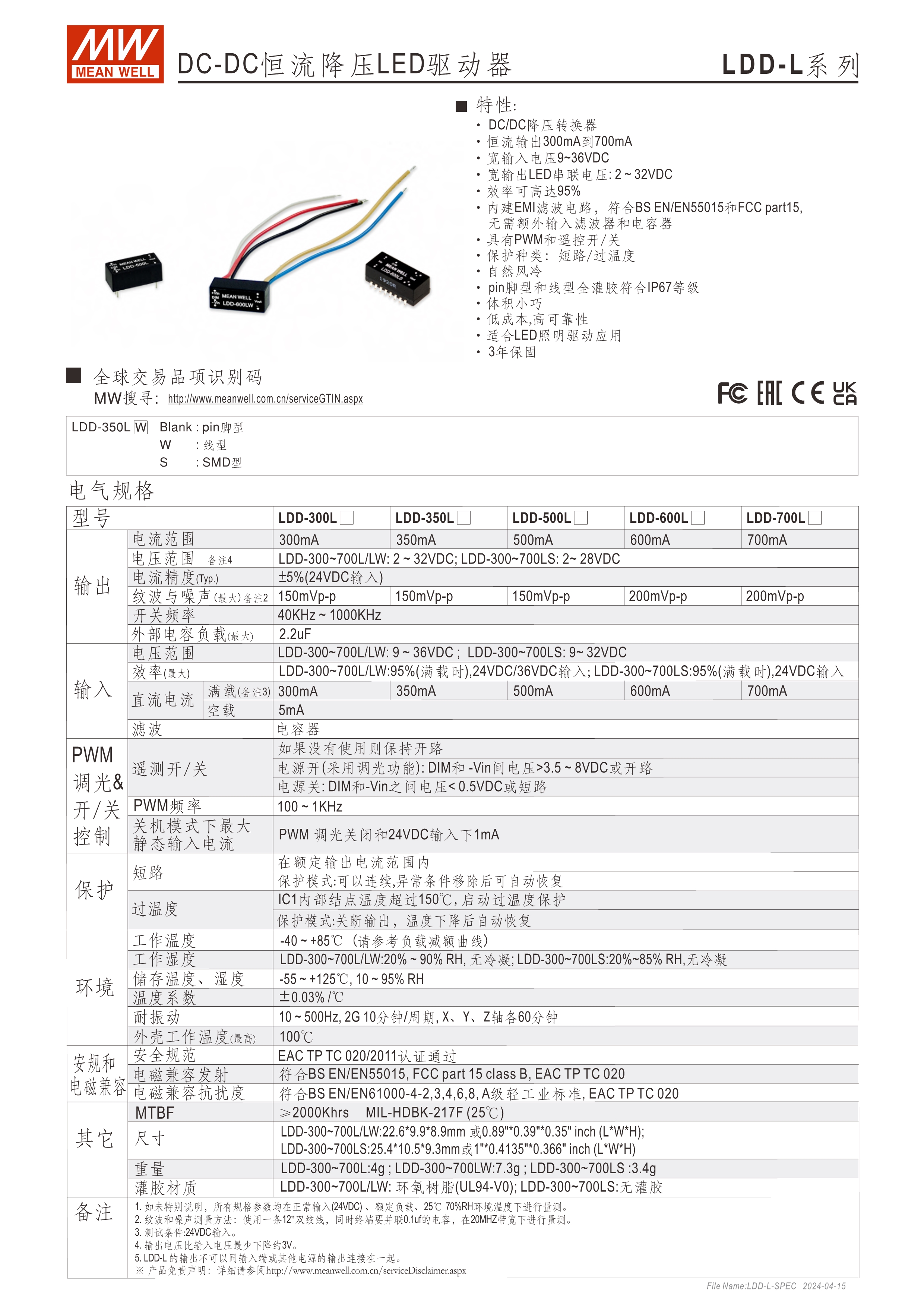 DC/DC降壓式恒流輸出LED驅(qū)動(dòng)器 最高達(dá)97%超高效率 內(nèi)建PWM+模擬調(diào)光功能及開/關(guān)遙控功能 IP67防護(hù)等級(jí) 3年保固 具備插pin及出線兩種型式
