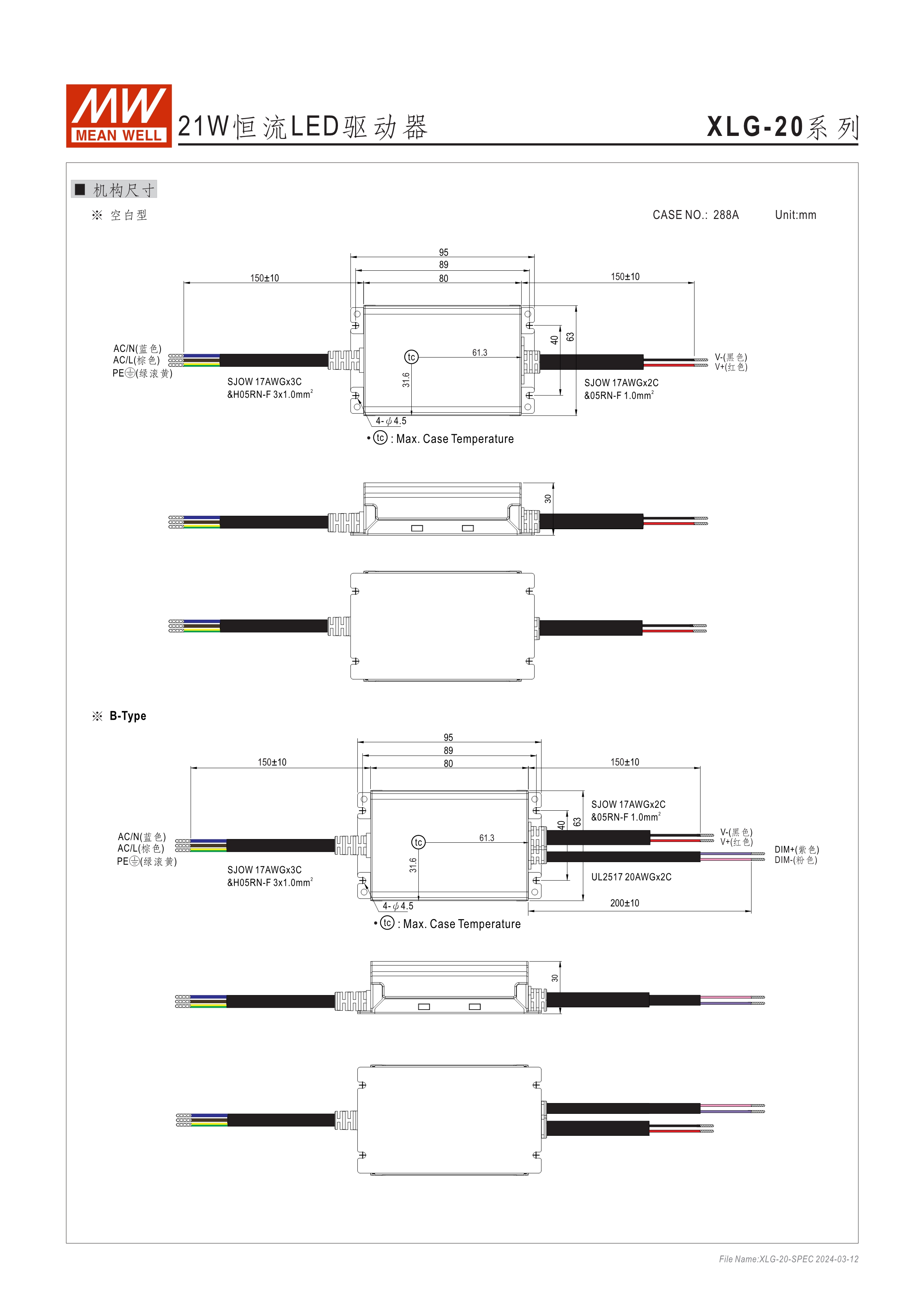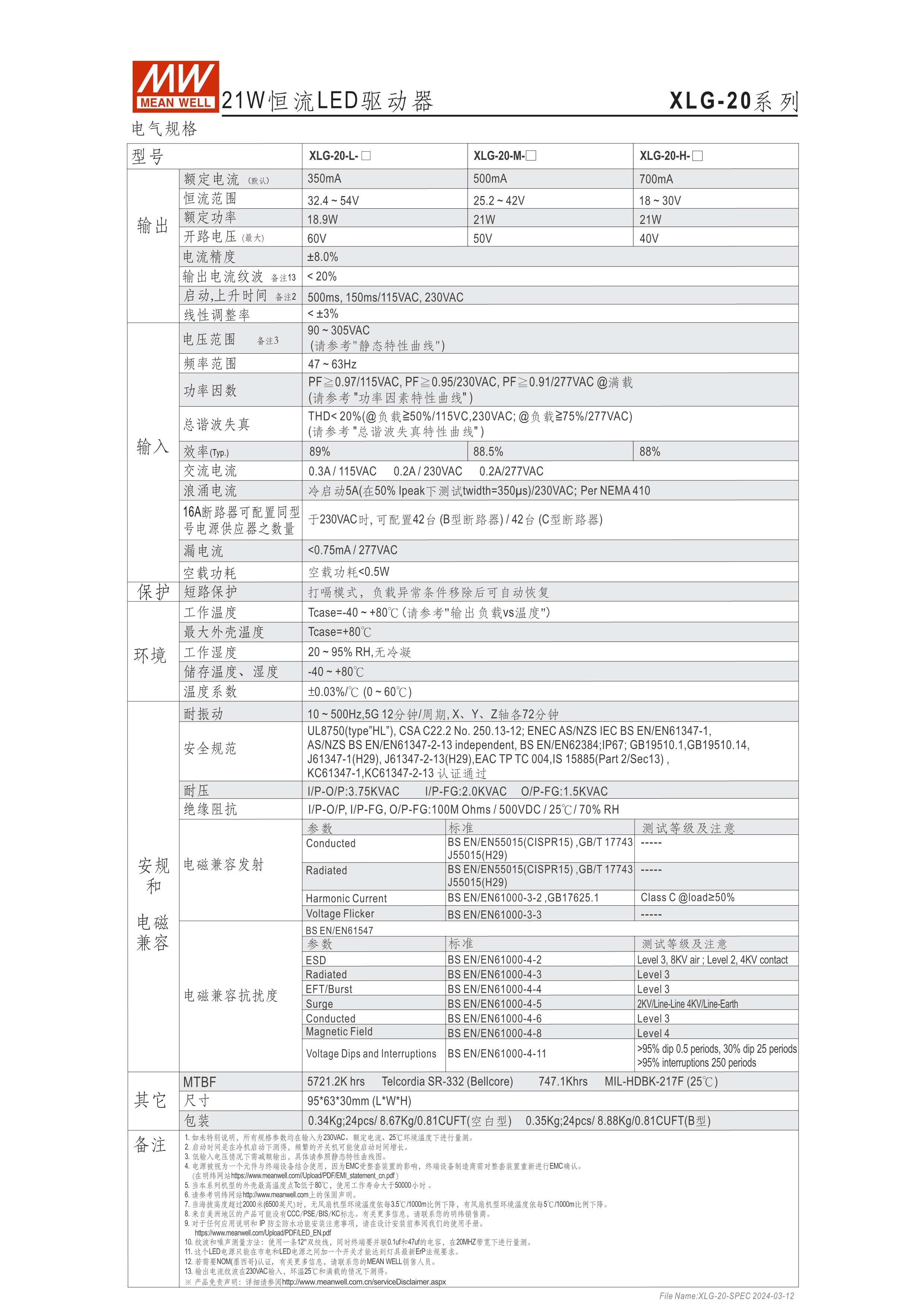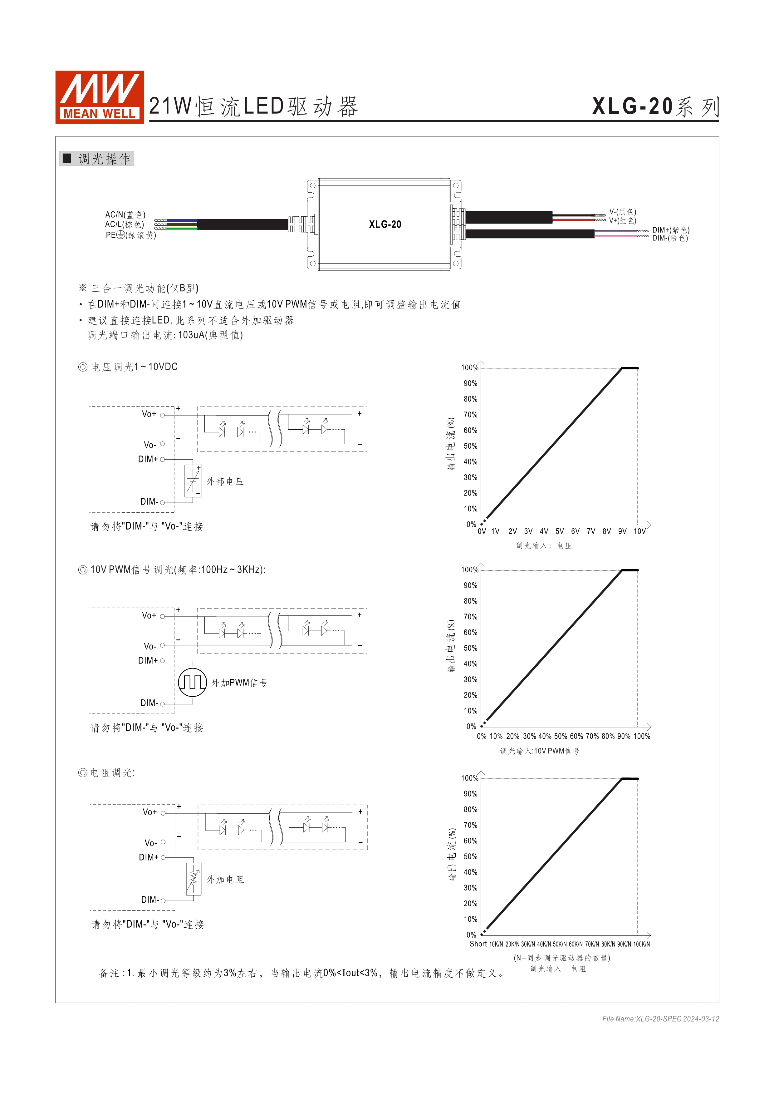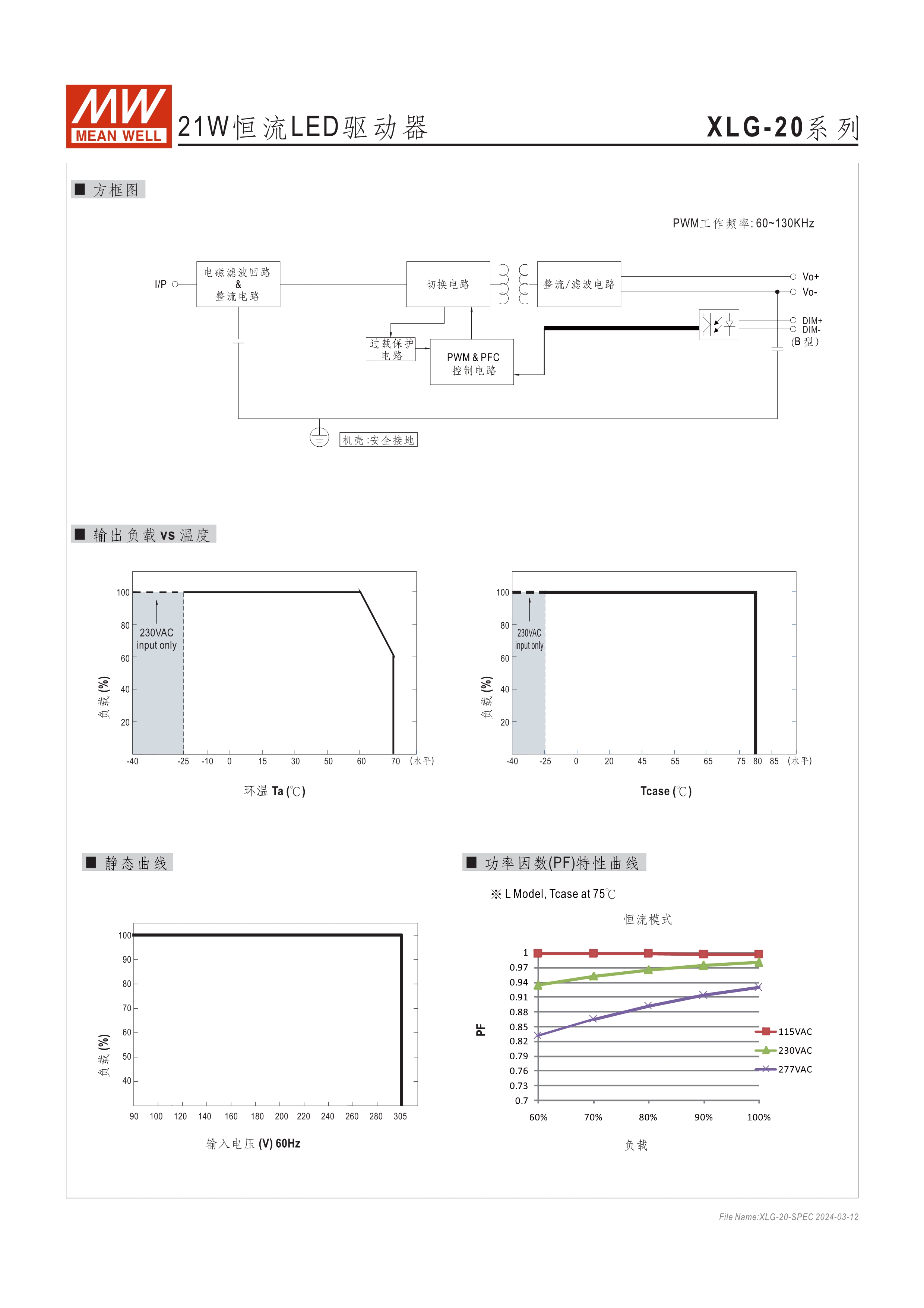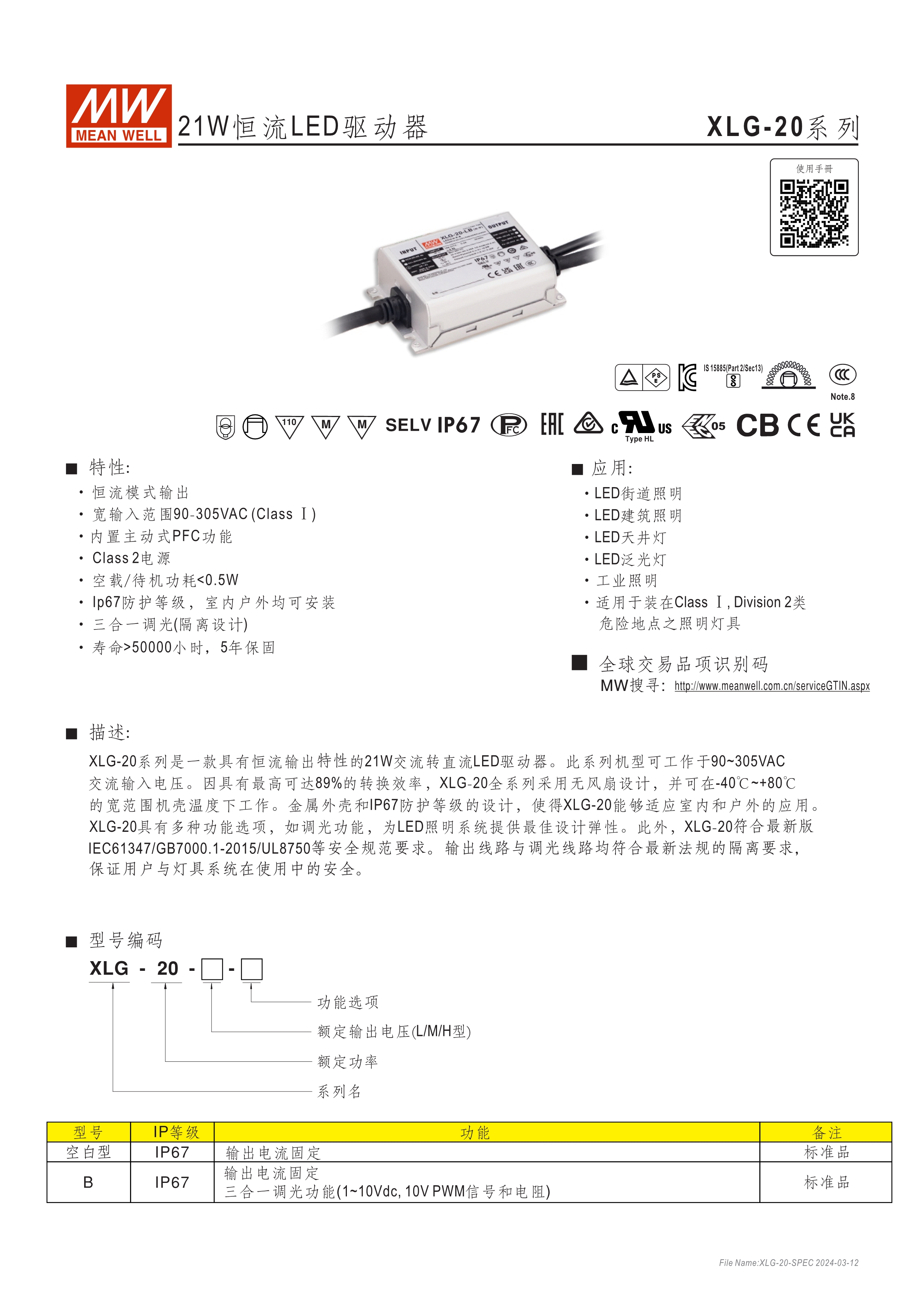 寬電壓輸入范圍100~305VAC (XLG-20為90~305VAC) 寬電流輸出可調(diào)整恒功率設計 (XLG-20為恒流模式) 主動式PFC設計及輸出效率可達90% 調(diào)光功能: 三合一 / DALI 保護功能:短路、過電壓、過溫度 雷擊保護耐壓設計6KV(L/N-FG)/4KV(L-N); XLG-20為4KV(L/N-FG)/2KV(L-N) 5年保固