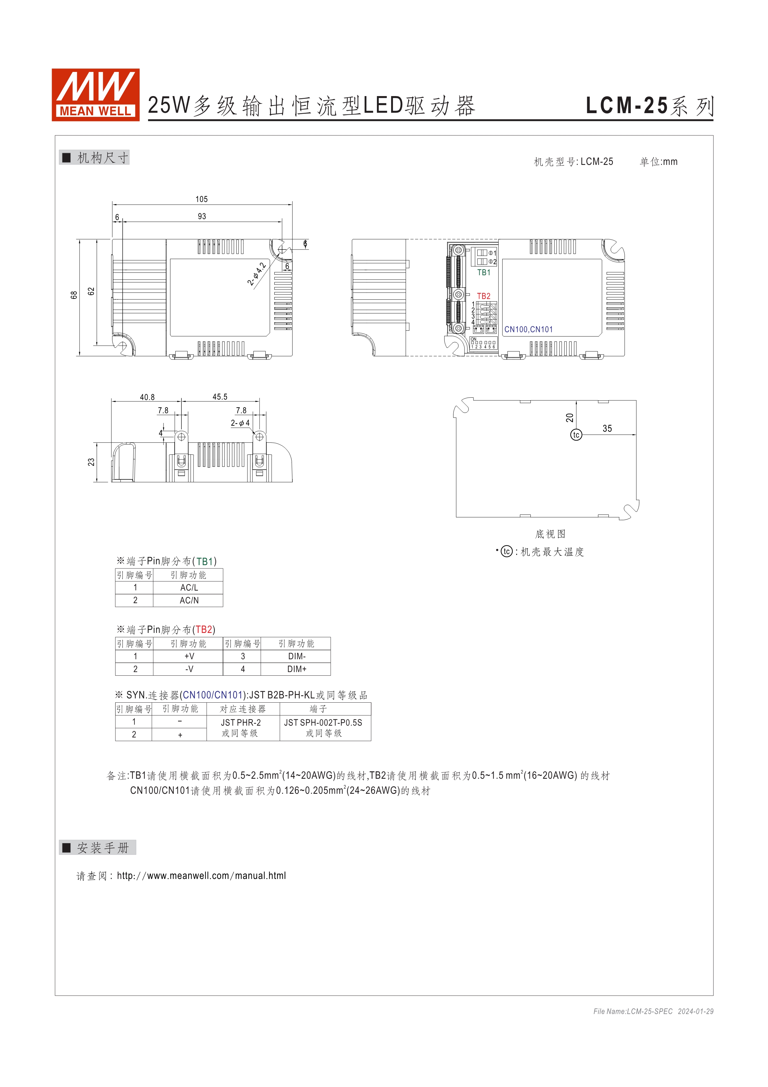 LCM-25(DA):180~277VAC交流輸入, LCM-40(DA)/60(DA):180~295VAC交流輸入 內(nèi)建主動(dòng)式功率因子矯正功能(active PFC) 塑料外殼 可透過指撥開關(guān)切換不同輸出電流檔位之多段式電源 LCM-25/40/60內(nèi)建三合一調(diào)光功能(0~10VDC, PWM信號(hào)或電阻,可關(guān)斷) LCM-25DA/40DA/60DA內(nèi)建DALI接口 和按鈕調(diào)光功能(Push Dim) LCM-40TW為2路輸出支持可溫(DT8)及調(diào)光(DT6)應(yīng)用 適合于LED室內(nèi)照明相關(guān)應(yīng)用