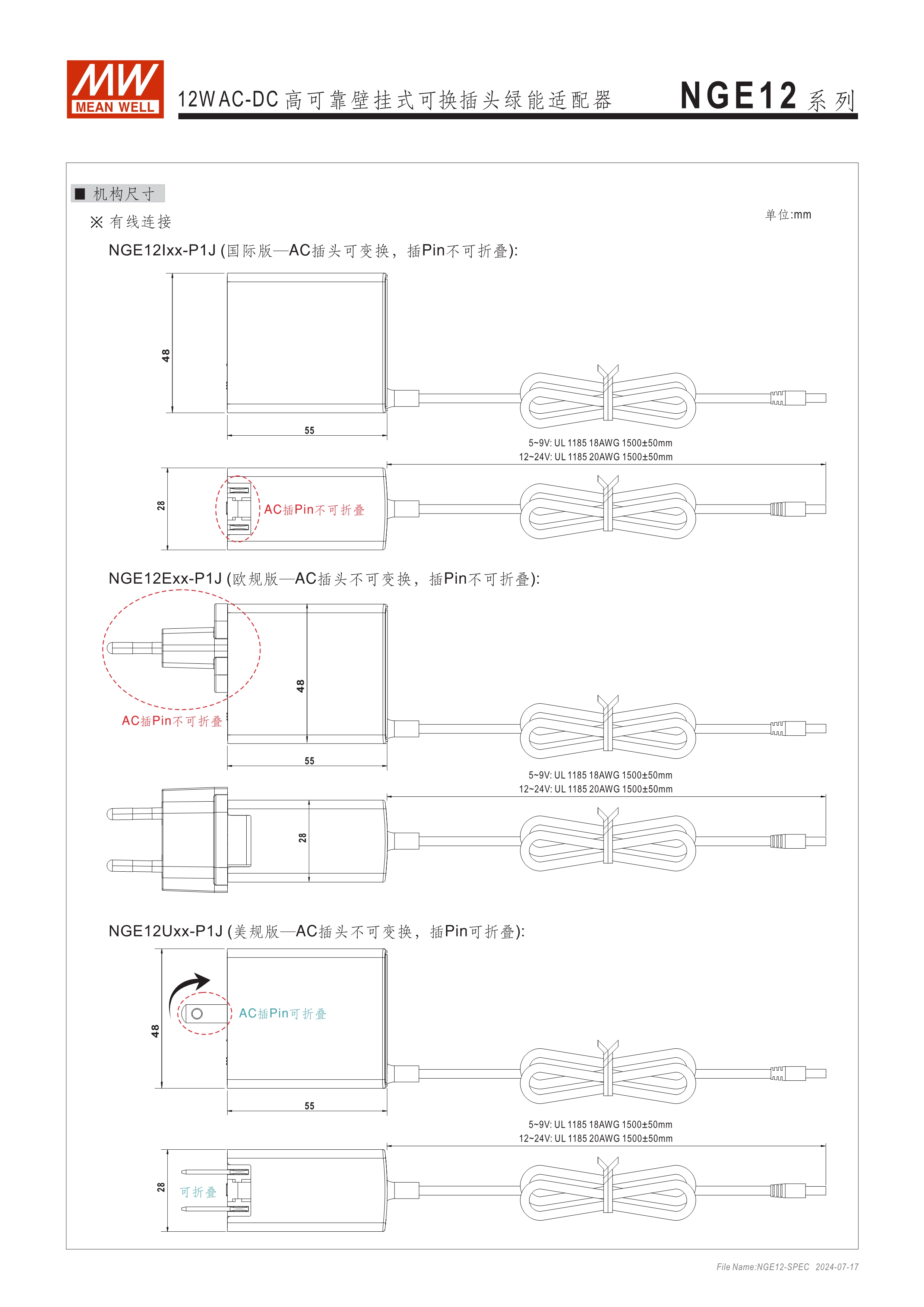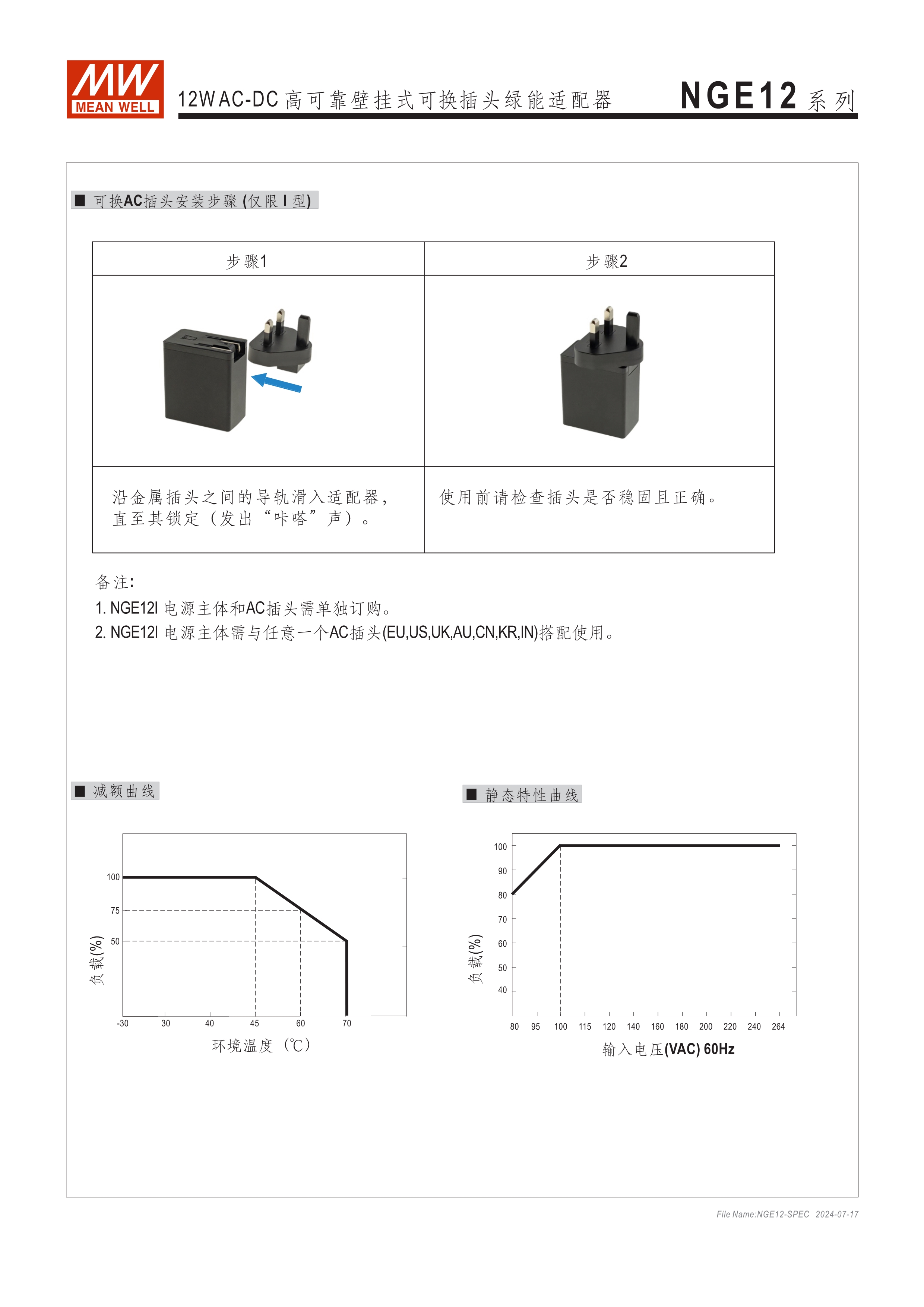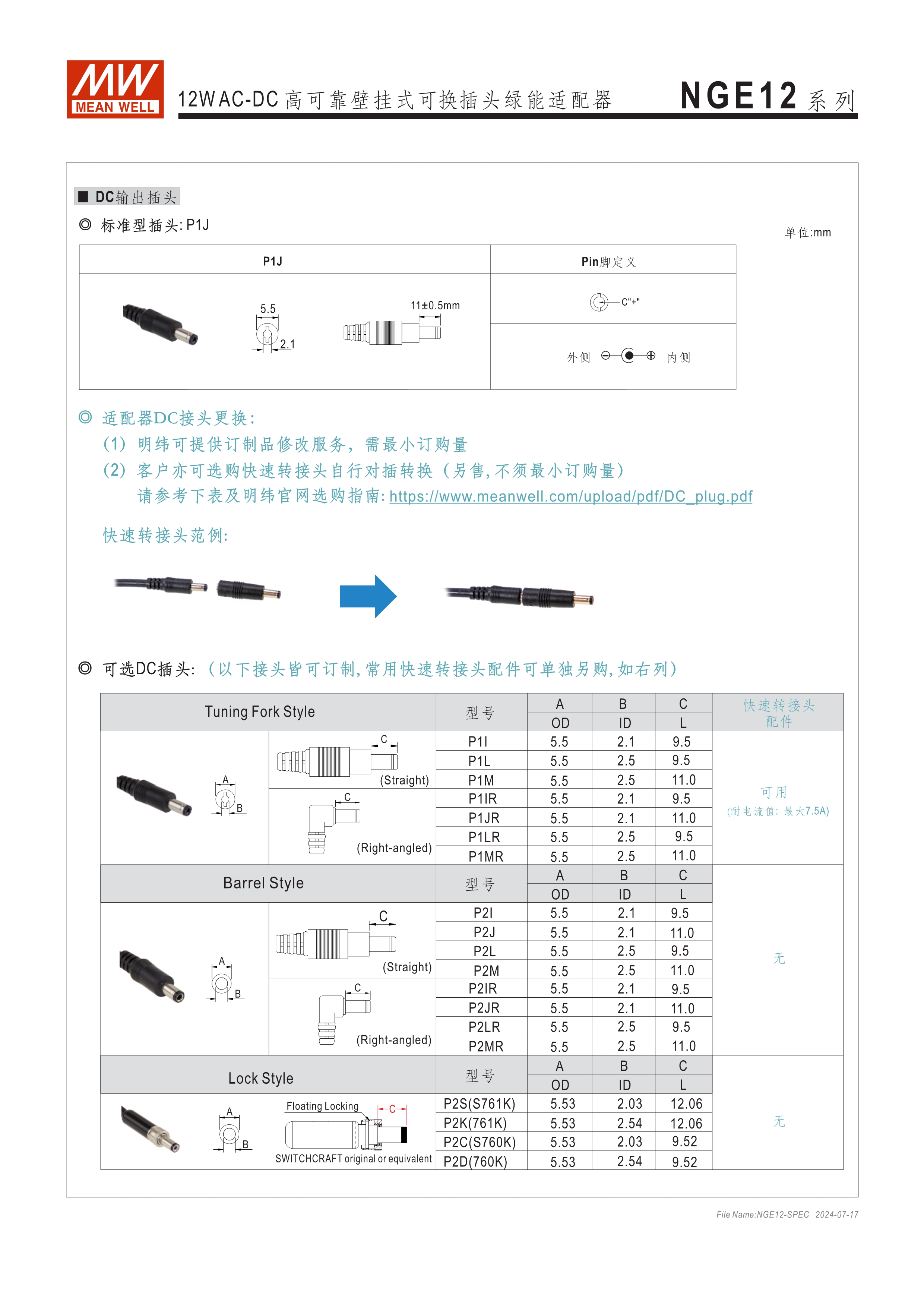 可換AC插頭 符合多領(lǐng)域全球認(rèn)證 (信息類 62368-1、醫(yī)療 60601-1, 家用 60335-1、工業(yè) 61558-1/-2-16) 全范圍AC輸入 2xMOPP, BF應(yīng)用 超窄面寬設(shè)計(jì)(28mm~30mm) 漏電流 <100uA 80~264V輸入 空載損耗<0.075W~0.1W 能效等級Level VII 保護(hù)功能:短路、過載、過電壓 漏電流 <100uA -30~70℃寬工作溫度 多種DC輸出轉(zhuǎn)接頭可更換 3年保固期