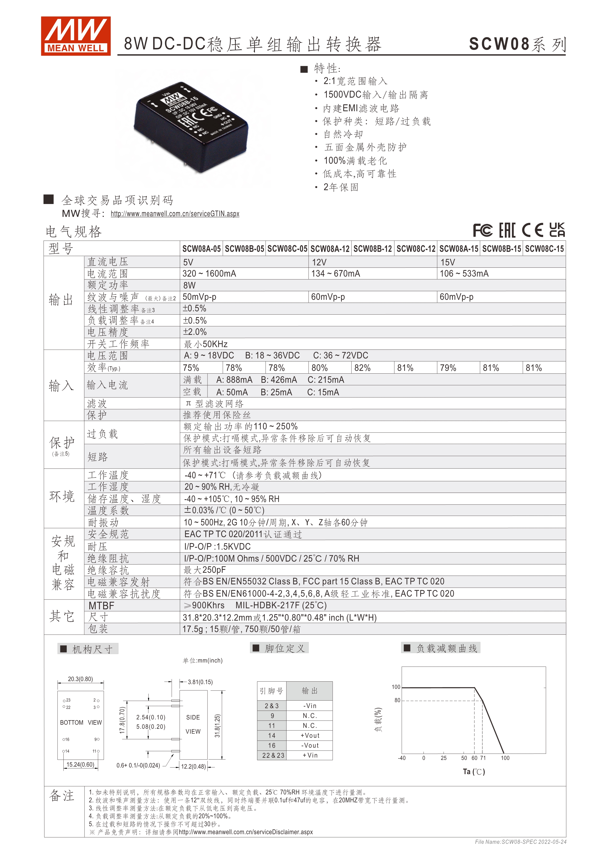 模塊型快選表 DIP24封裝 寬輸入范圍—2:1 (標(biāo)準(zhǔn)品), 4:1 (選購(gòu)品) 輸入/輸出隔離—1~1.5KVDC (標(biāo)準(zhǔn)品), 3KVDC (選購(gòu)品) 擁有單組及雙組輸出機(jī)種