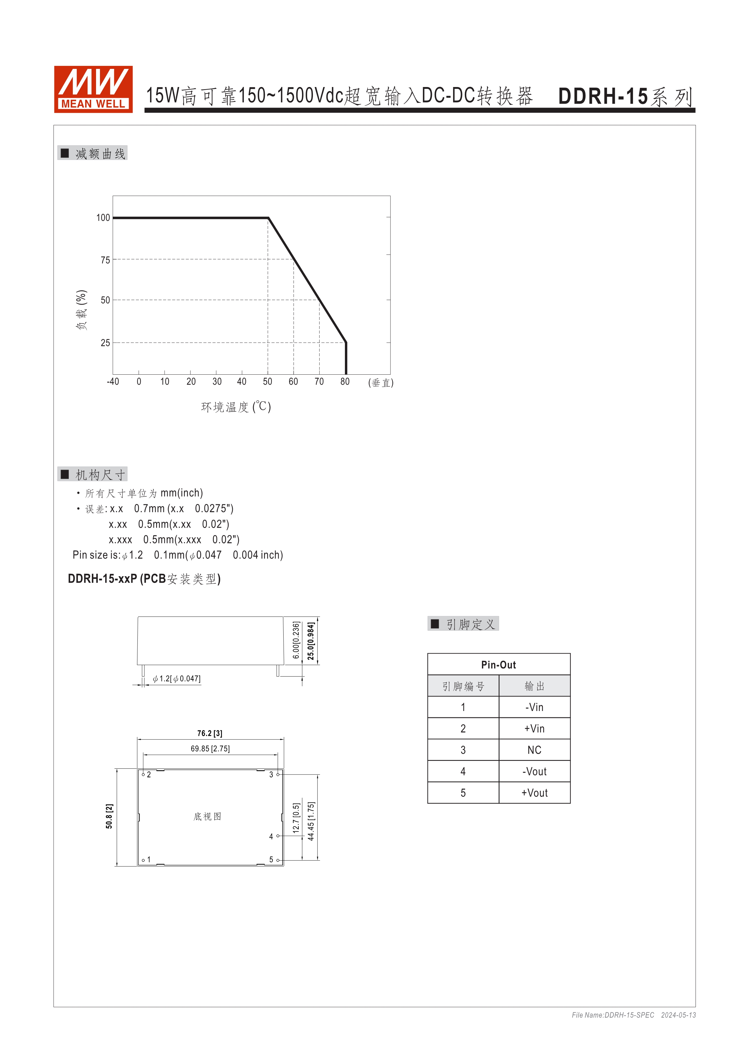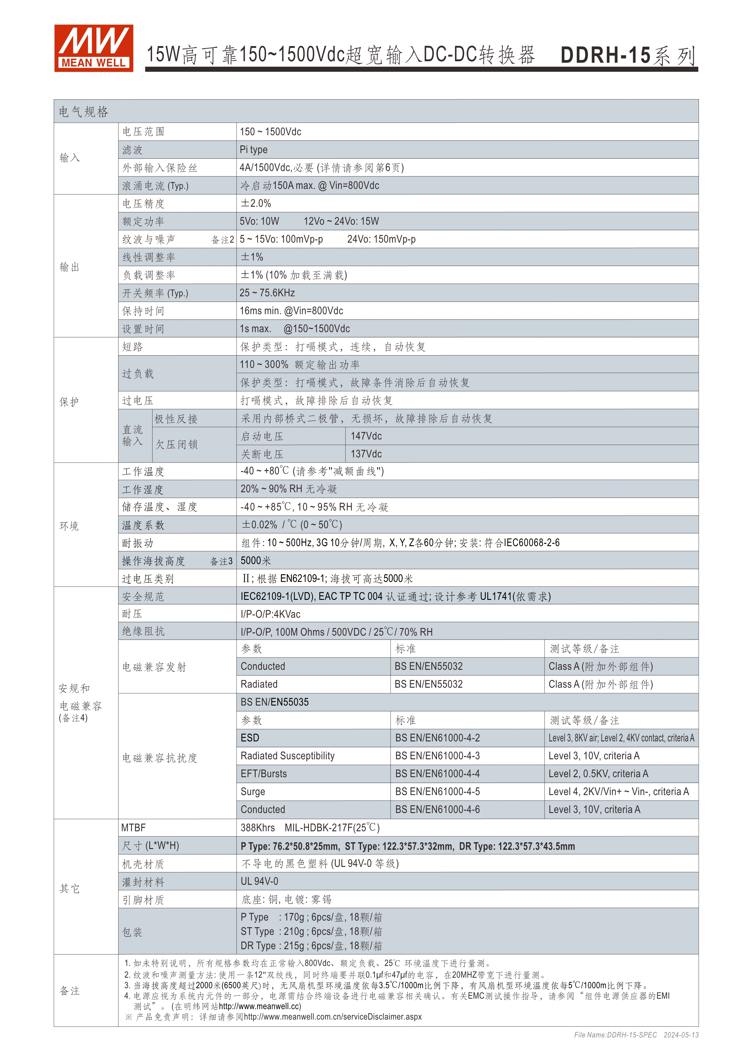 多種安裝方式可供選擇(基板型、端子式和導(dǎo)軌式) 150~1500Vdc 10:1 超寬輸入范圍 內(nèi)部灌膠,提供防塵和防潮保護(hù) 超寬溫度范圍:-40℃~+80℃ 保護(hù)功能:短路保護(hù)、超載保護(hù)、過電壓保護(hù)、輸入電壓過低及極性反接保護(hù) 3年保固