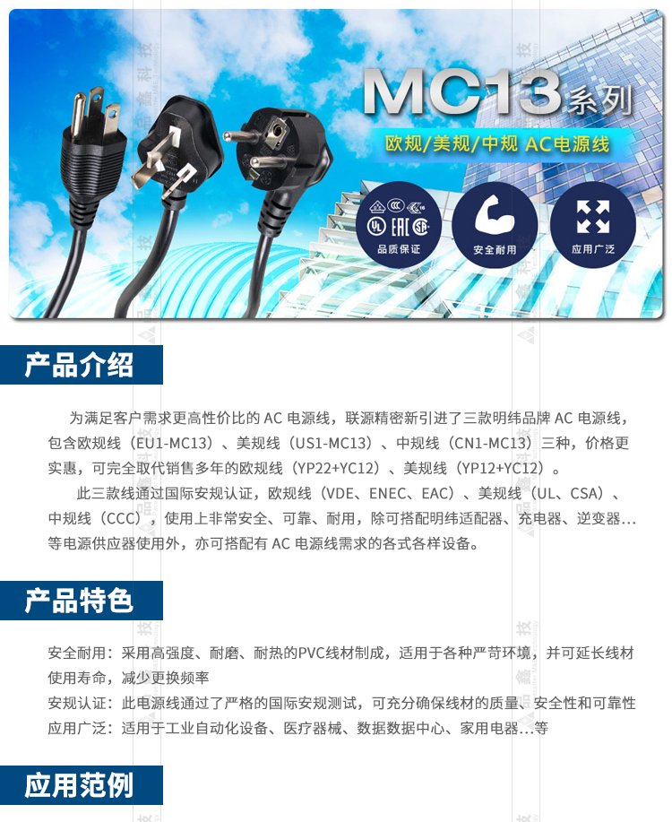 AC電源線 明緯電源 聯(lián)源精密 工控配件 電源線材線束