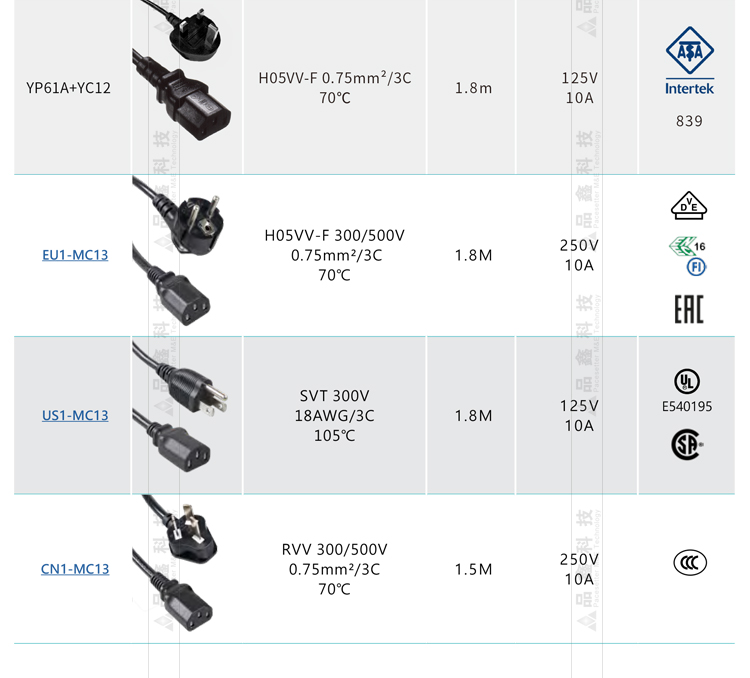 YP18+YC12明緯電源AC電源線 聯(lián)源精密 工控配件電源線材線束1.8米