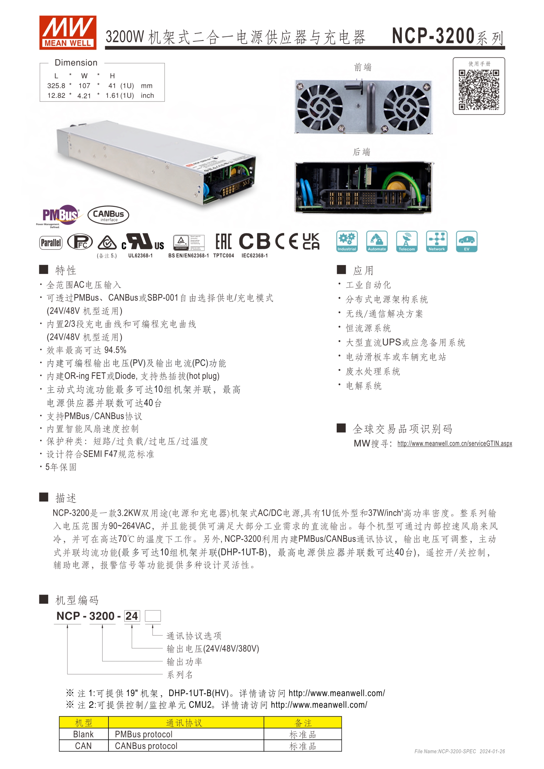系統(tǒng)電源解決方案 (PDF) PMBus、CANBus可選擇供電或充電模式或SBP-001(僅適用于24V/48V型號) 內(nèi)置2/3段充電曲線和可編程曲線(僅適用于2V/48V型號) 效率高達(dá)94.5% 具有OR-ingFET余能,支持熱插(hotplug) 主動式并聯(lián)均流多達(dá)10個機(jī)架(DHP-1UT-B)和可并聯(lián)之最大電源為40臺 具有1C接口,支持PMBus/CANBus協(xié)議