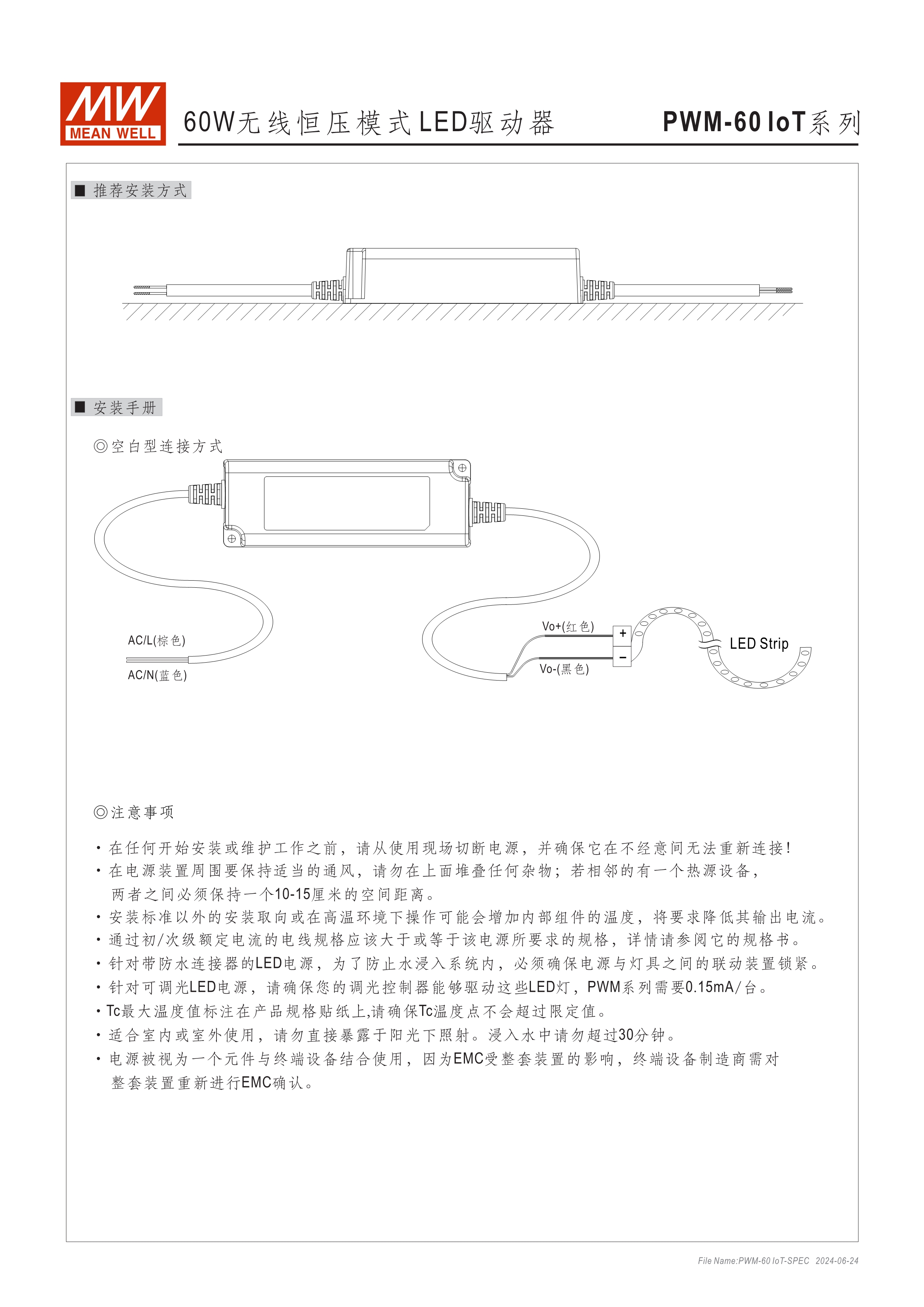 恒壓輸出模式多種可選 (PWM系列) 無頻閃設計 塑料外殼及符合Class II無地線設計 主動式PFC設計 雷擊保護耐壓設計2KV(L-N) 保護功能:短路、過電壓、過溫度
