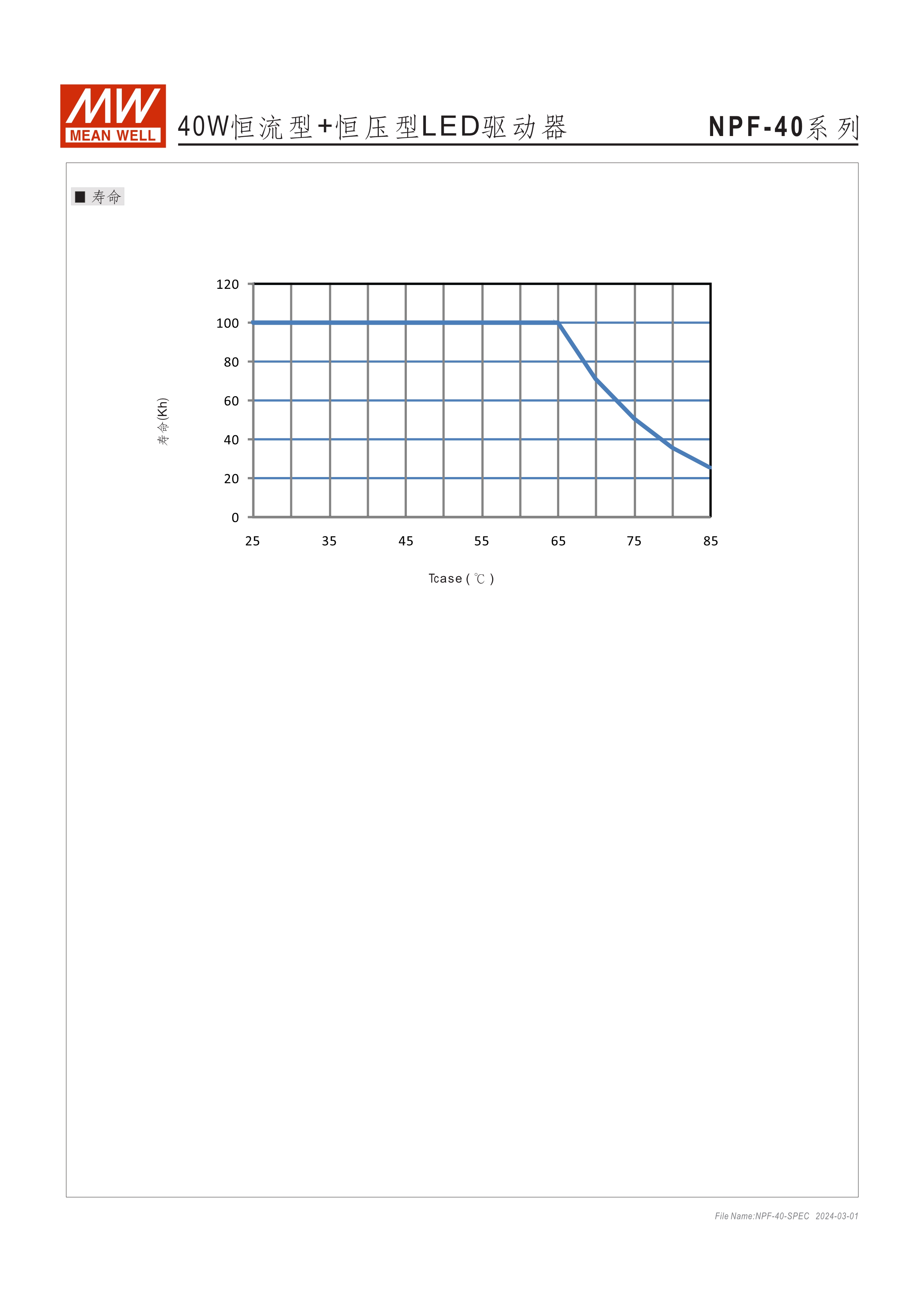 90~305VAC交流輸入, 內(nèi)建主動式功率因子矯正功能(active PFC) 塑料外殼,IP67防護等級 Class II設(shè)計,無FG 空載/待機消耗瓦數(shù)<0.15W(D type機種為<0.5W) D type機種內(nèi)建三合一調(diào)光功能(0~10VDC, PWM信號或電阻,可關(guān)斷) Type "HL" LED電源適用在安裝于Class I, Division 2 類 危險地點之照明燈具[NPF-40(D)/-60(D)/-120(D)] 適合于LED照明及LED電子廣告牌相關(guān)應用 5年保固期