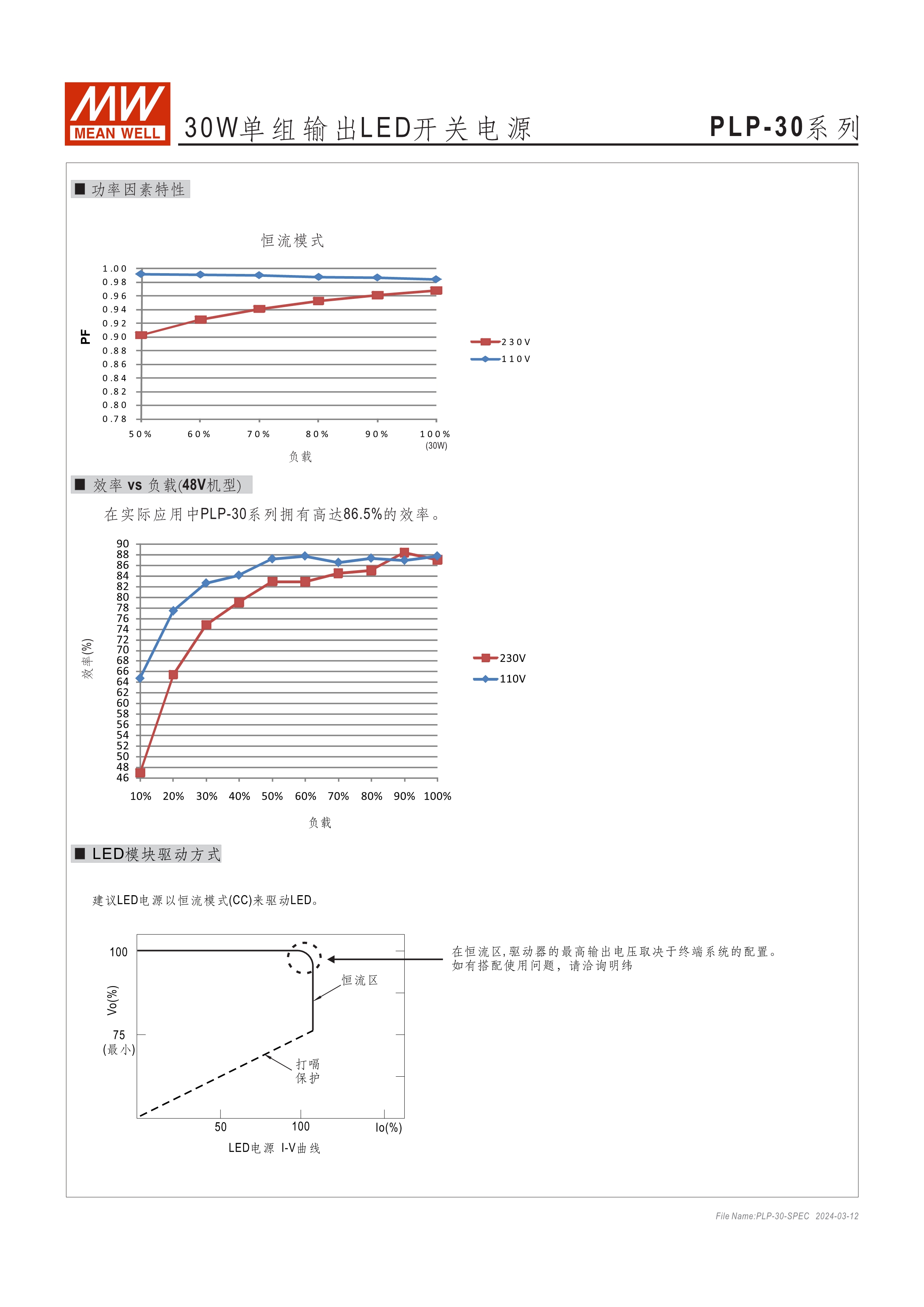 90~264VAC交流輸入, 內(nèi)建主動(dòng)式功率 因子矯正功能(active PFC) 適合內(nèi)置于LED照明系統(tǒng)