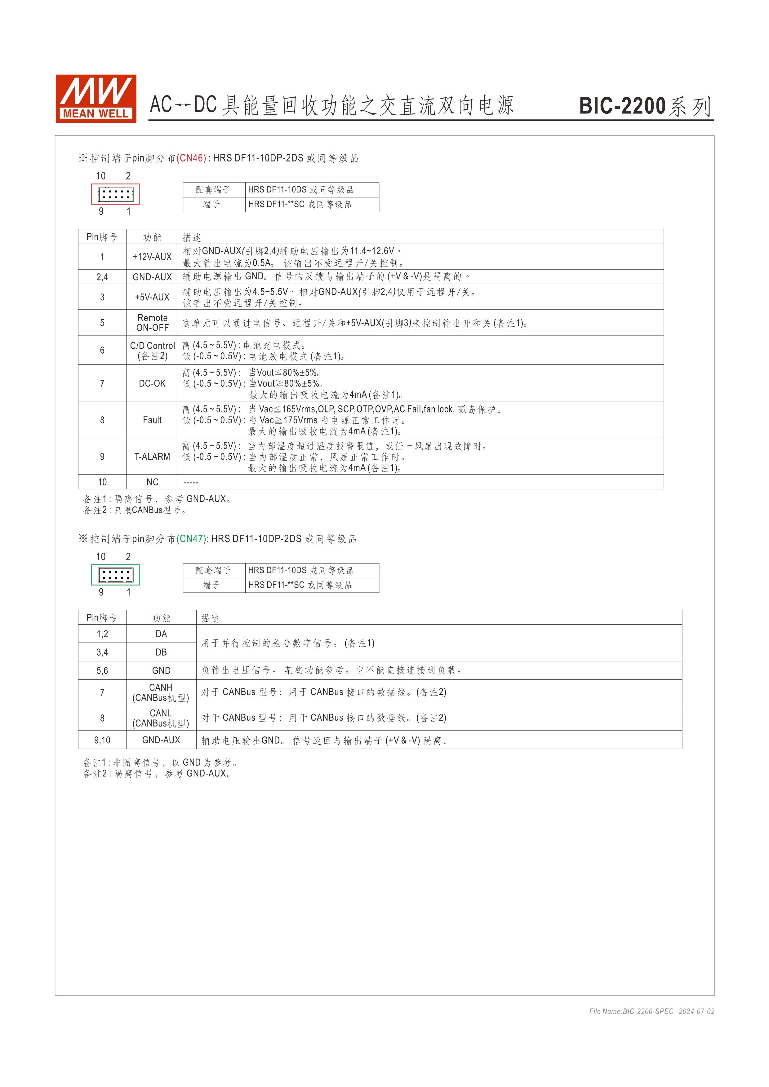 系統(tǒng)電源解決方案 (PDF) 低高度1U薄型化設(shè)計 全機數(shù)字化控制,雙向轉(zhuǎn)換效率高達93% 快速雙向切換響應(yīng)時間<1ms (AC/DC ? DC/AC) CB/UL/TUV 62368法規(guī)認(rèn)證,電路設(shè)計符合IEC 62477法規(guī) 最高可支持5臺并聯(lián)應(yīng)用,功率擴增至11kW 回饋電網(wǎng)電流總諧波失真<3% 數(shù)字通訊可強制切換充放電模式(選配CANBus機型) 保護功能:主動式孤島保護、AC異常保護、DC過電壓保護、過負(fù)載保護、短路保護、過溫度保護 5年保固