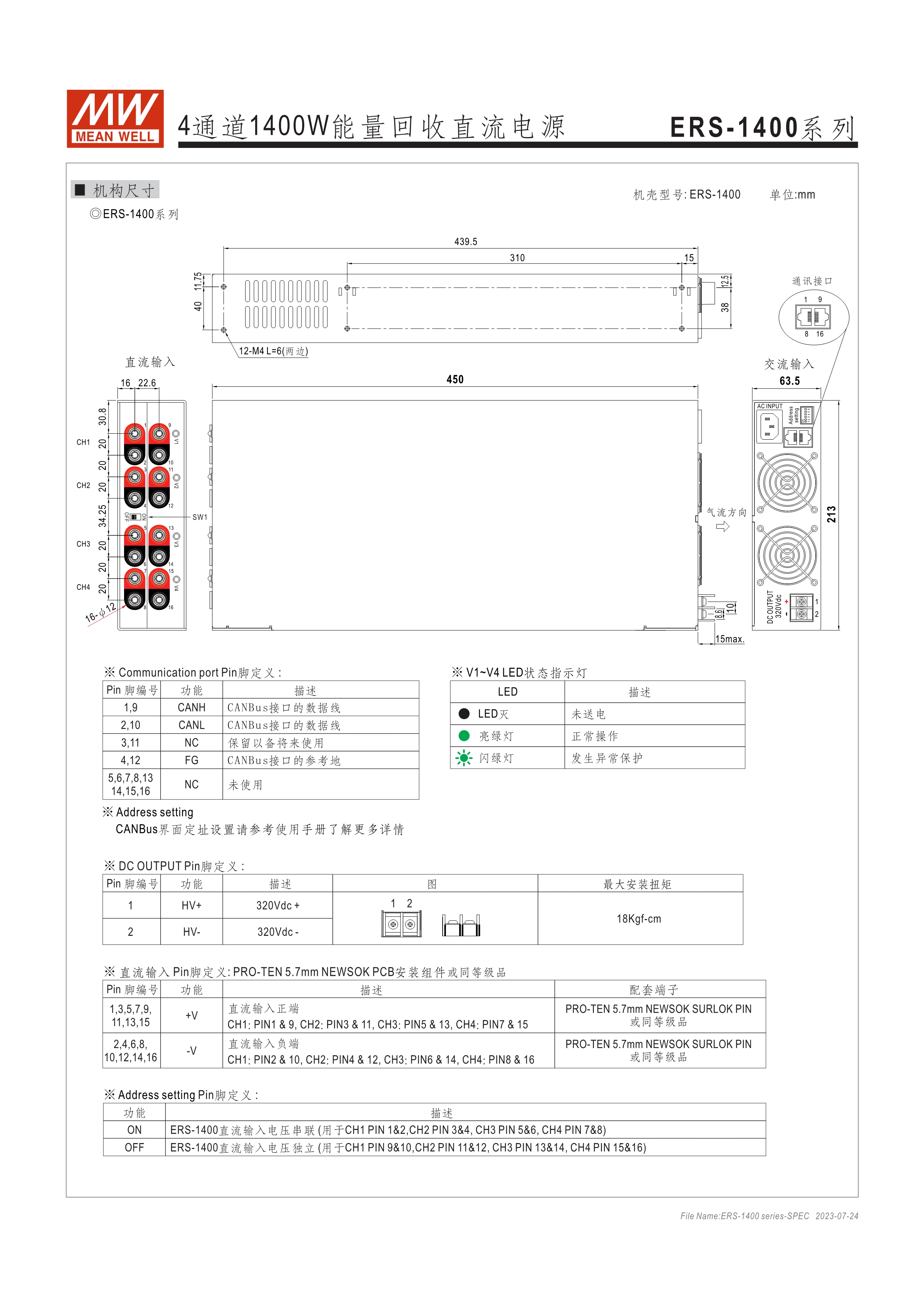 寬輸入電壓范圍10~60VDC/60~380VDC(視機(jī)型而定) 效率高達(dá)91% 靈活配置的模塊化設(shè)計 彈性的CC/CV/CP操作模式 通過CMU2A實現(xiàn)CAN總線協(xié)議遠(yuǎn)程控制和監(jiān)控控制 可連接最多64臺ERS-1400系列 保護(hù)功能: 過電壓、欠電壓、過熱、通信錯誤 3年保固期