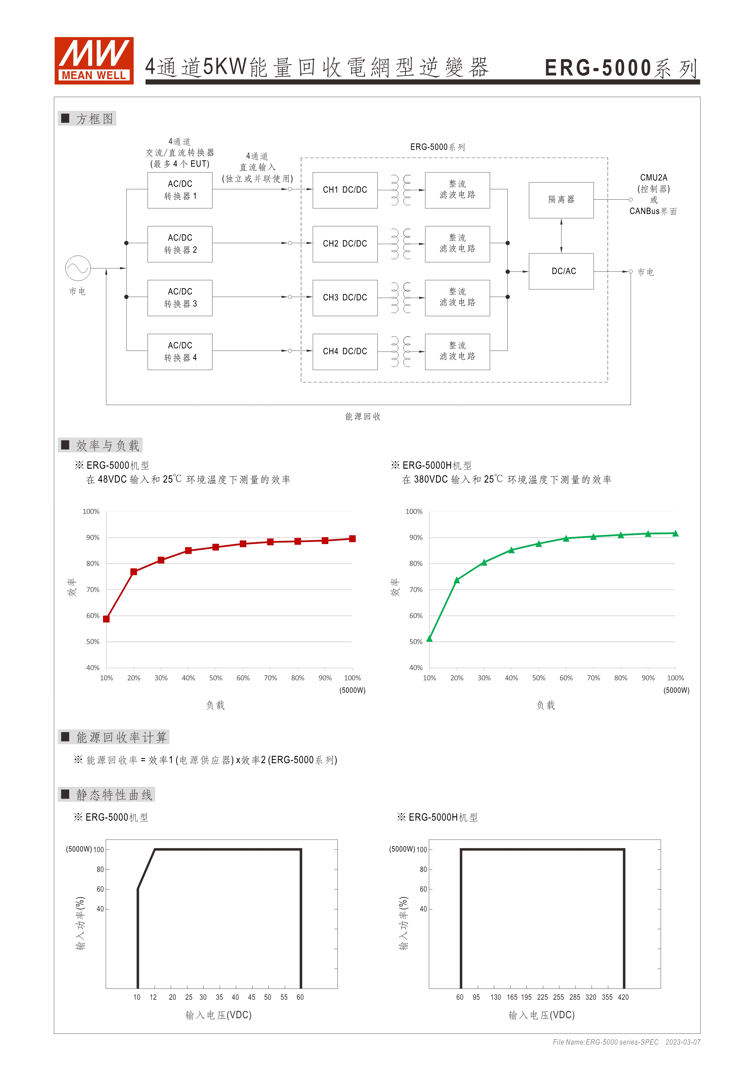 系統(tǒng)電源解決方案 (PDF) 寬輸入電壓范圍10~60VDC/寬輸入電壓范圍60~420VDC 效率高達(dá)91% 靈活配置的模塊化設(shè)計(jì) 彈性的CC/CV操作模式 通過(guò)CMU2A實(shí)現(xiàn)CAN總線協(xié)議遠(yuǎn)程控制和監(jiān)控控制 可連接最多64個(gè)ERG-5000系列 保護(hù)功能:過(guò)電壓、欠電壓、過(guò)熱、過(guò)功率、電網(wǎng)故障、過(guò)功率無(wú)輸入、通信錯(cuò)誤 3年保固