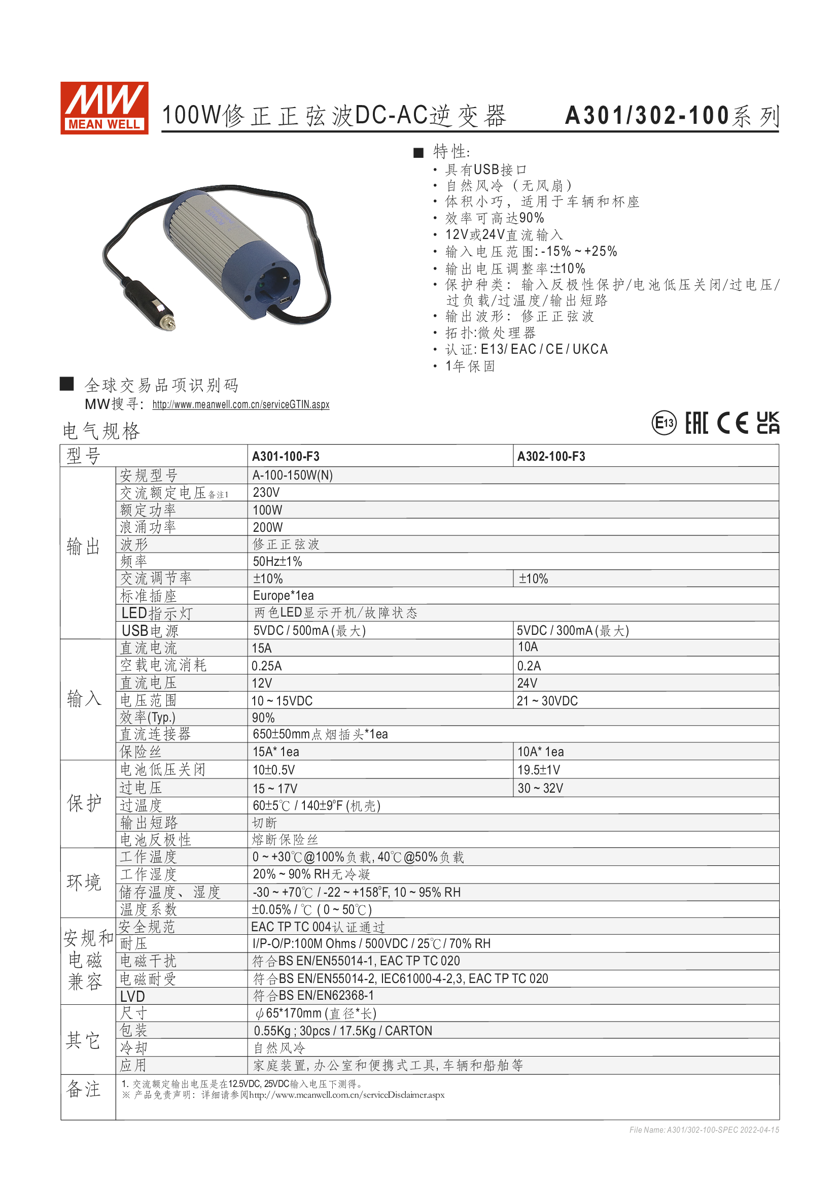 功能特性 修正正弦波, 適用於阻性負載 經(jīng)濟型 1年保固期