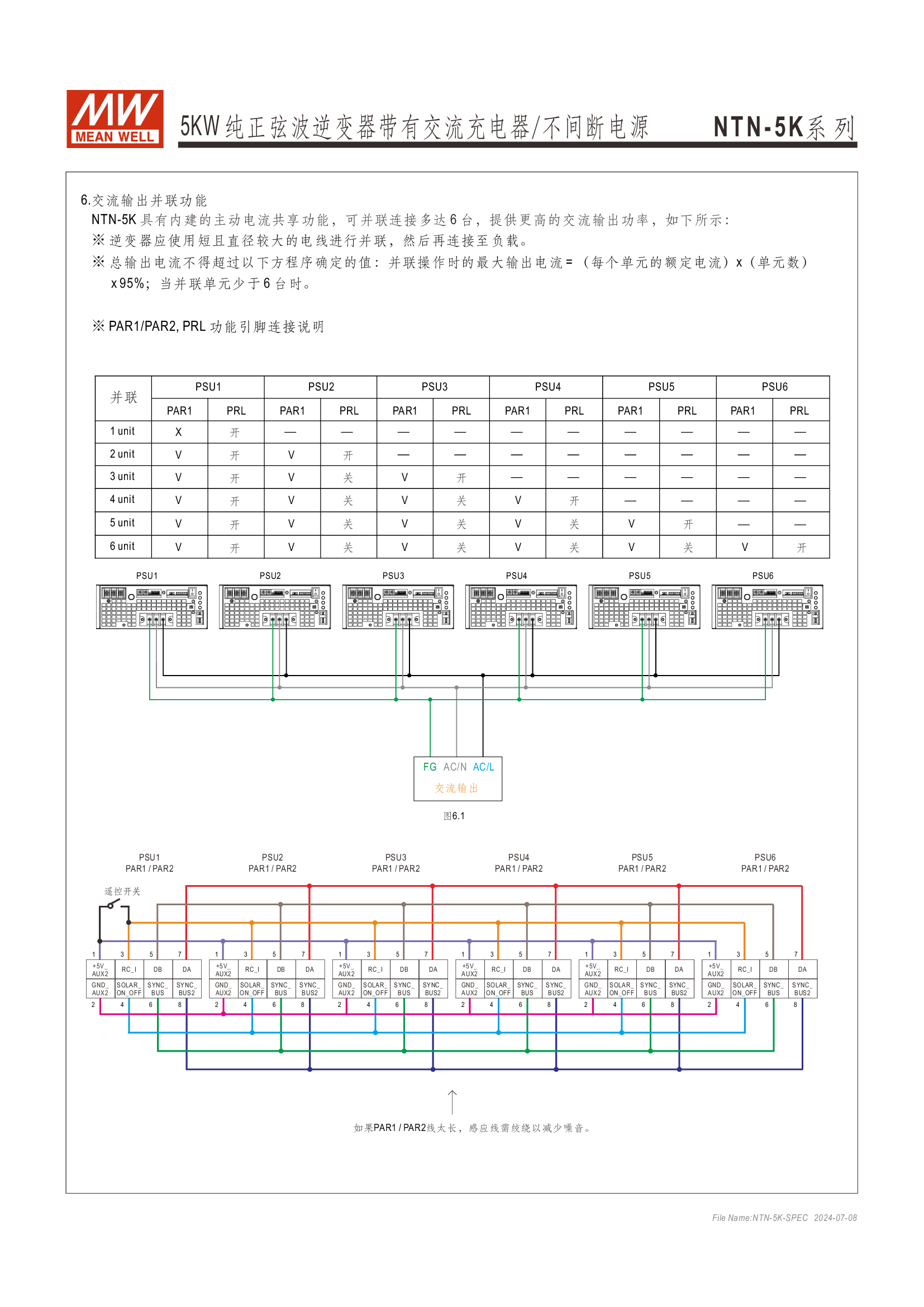 多功能一體機(jī) (AC-DC 充電器 + DC-AC 逆變供載 + AC 旁路供載) AC 市電充電最高可達(dá) 135A /4KW 可提供瞬間功率達(dá) 10KW 并聯(lián)同步運(yùn)行高達(dá) 30KW(5+1 機(jī)組) 多重智能保護(hù)功能: 直流輸入:極性反接/ 低壓告警與關(guān)機(jī)/ 過(guò)壓 /電池過(guò)放電保護(hù) 交流輸出:短路/ 過(guò)載/ 過(guò)溫 內(nèi)建 MODBus 或 CANBus 通訊監(jiān)控 5 年保固
