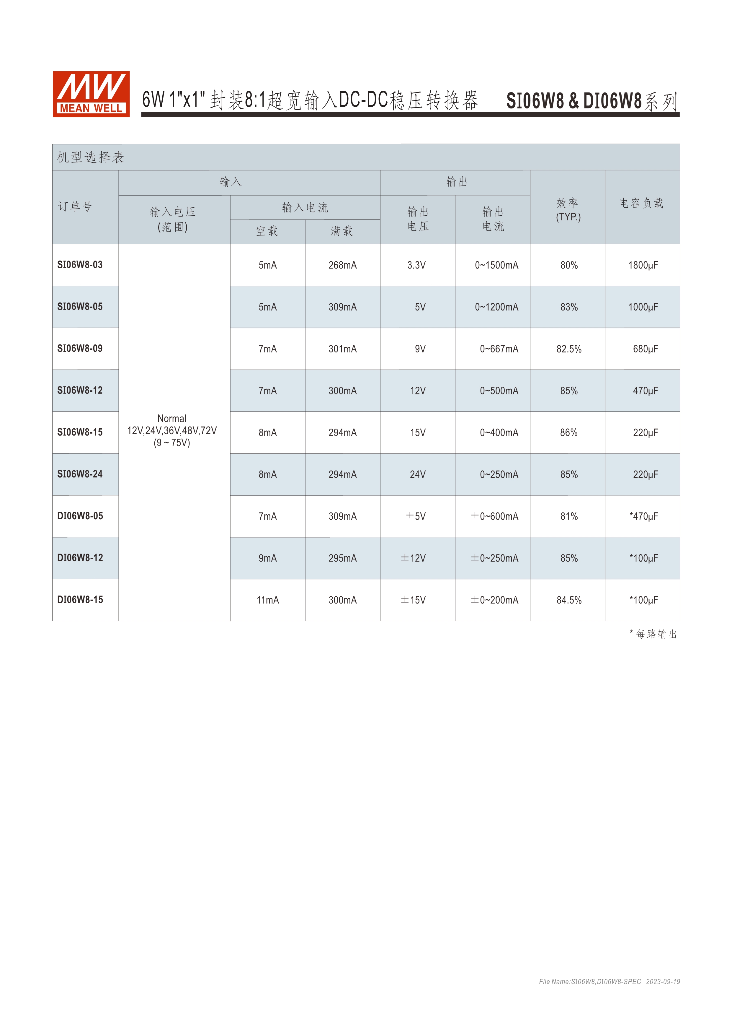 模塊型快選表 DIP封裝 輸入/輸出隔離—1.5KVDC 擁有單組輸出機種 遙控功能, ±10%輸出調(diào)節(jié)