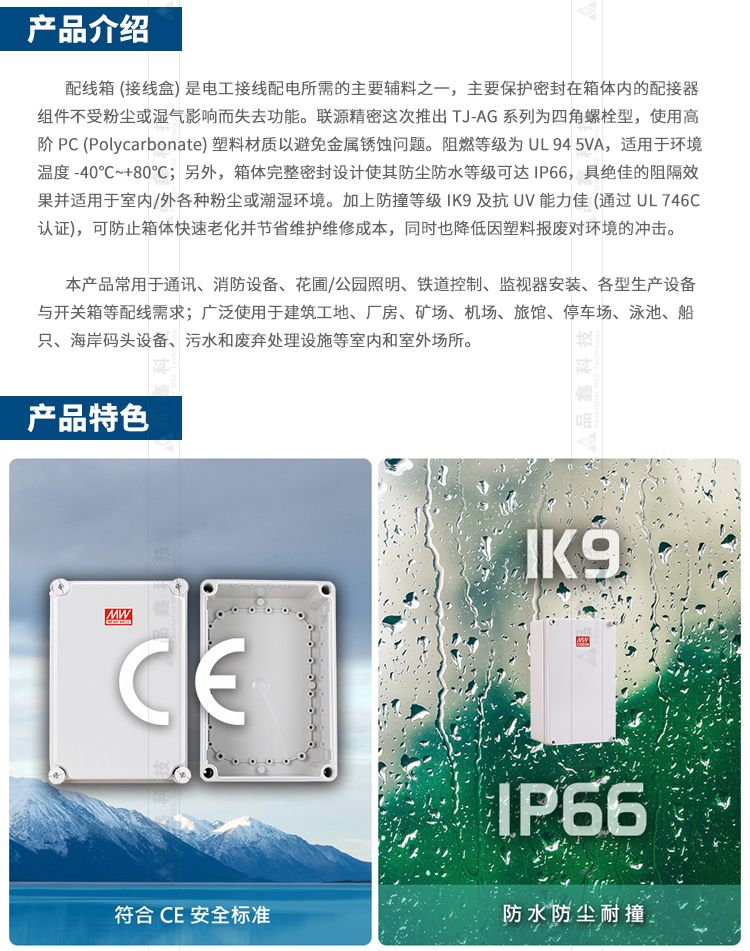 TJ-AG系列 明緯聯(lián)源精密塑料配線箱 IP66防水防塵配線控制箱 IK9